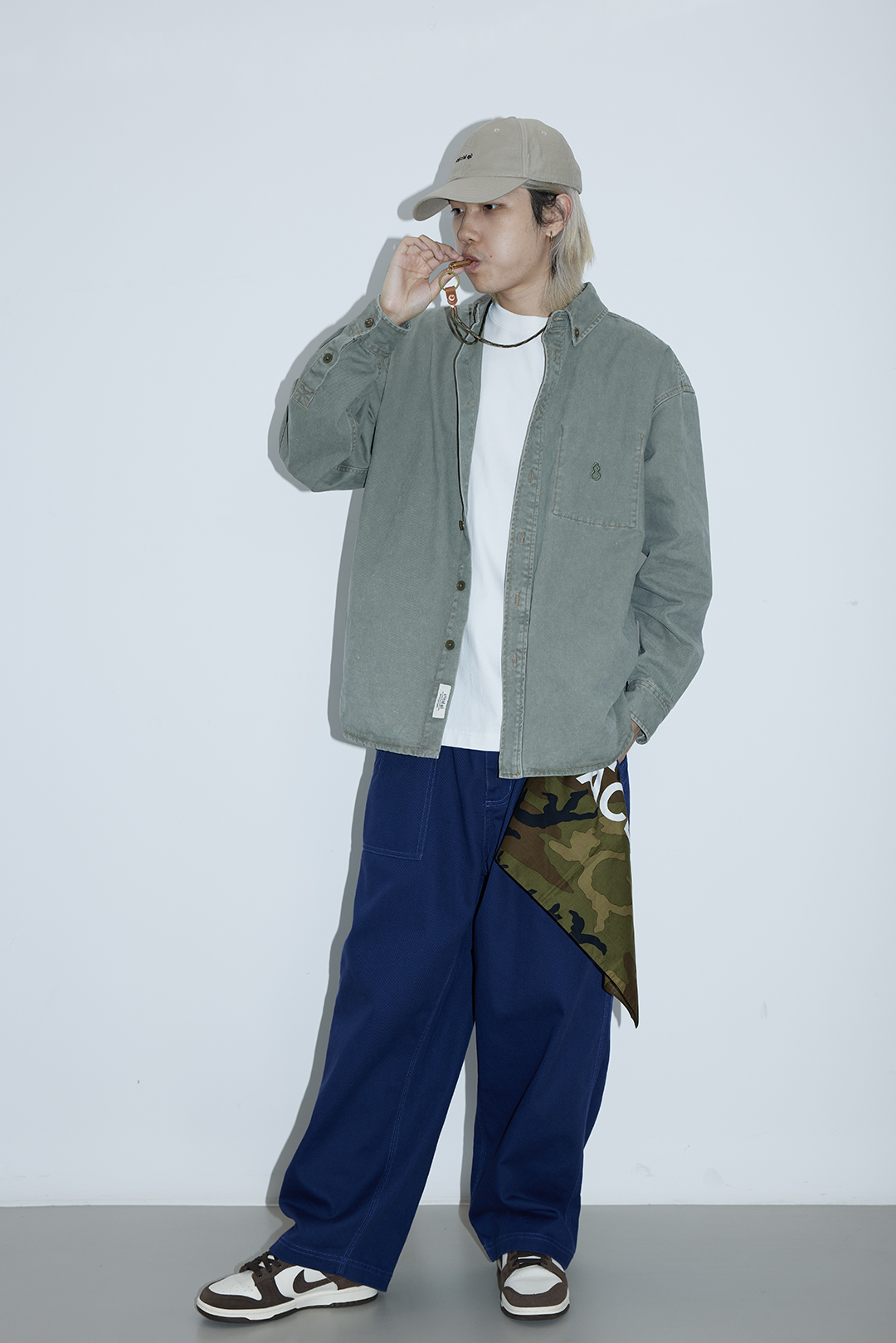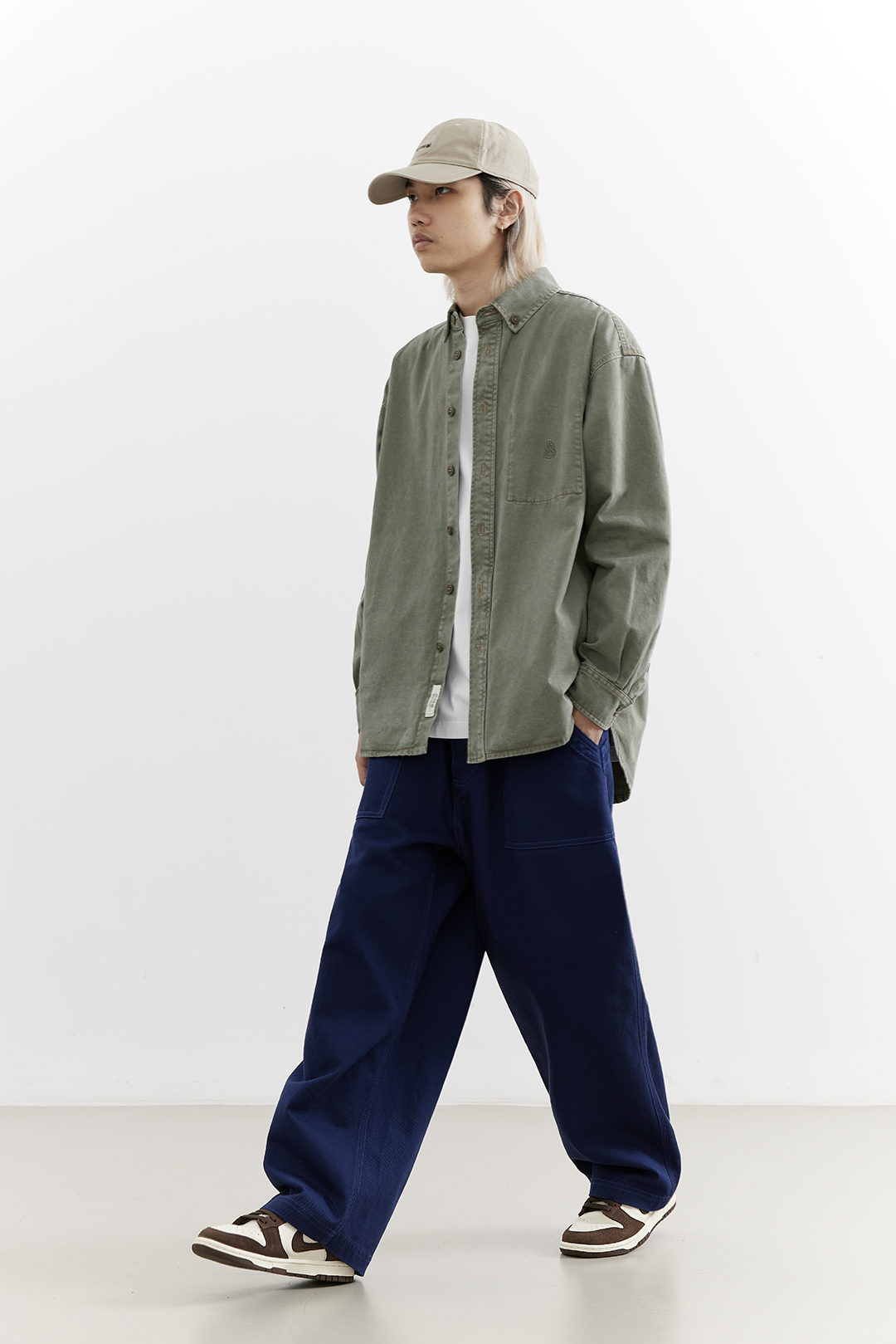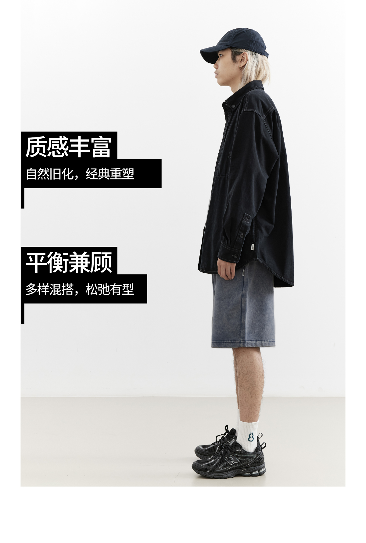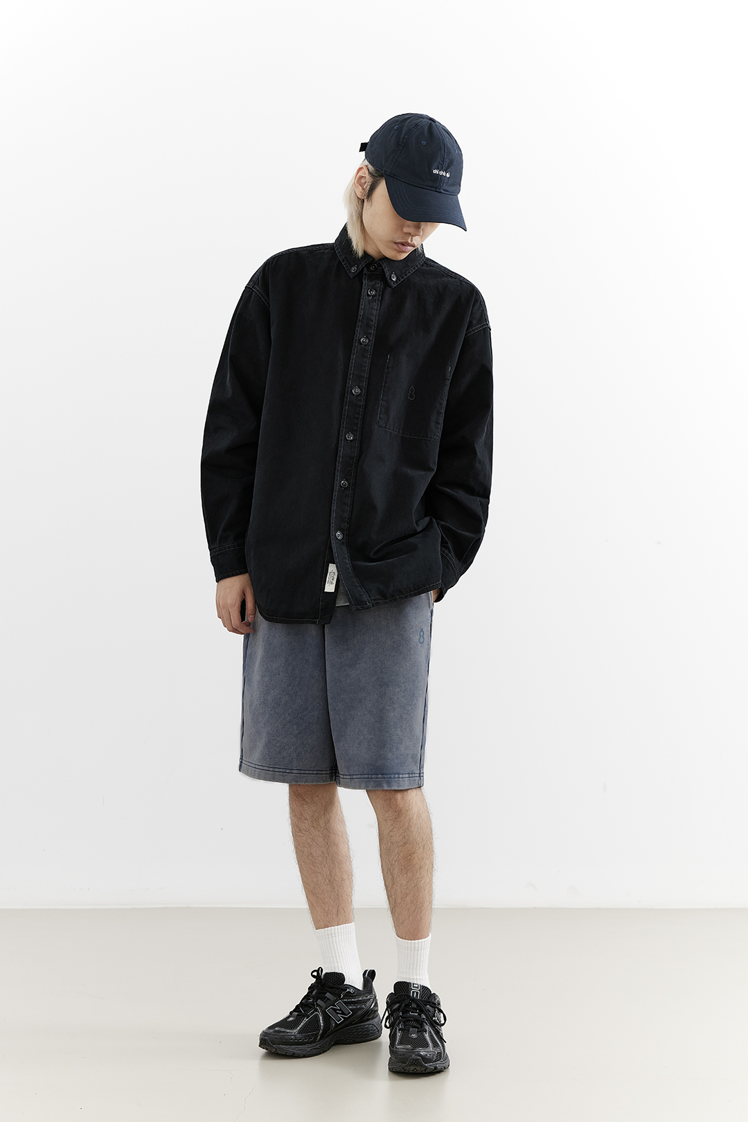 吃茶去chichaqu25全棉重磅洗水做旧长袖衬衫复古宽松街头休闲百搭