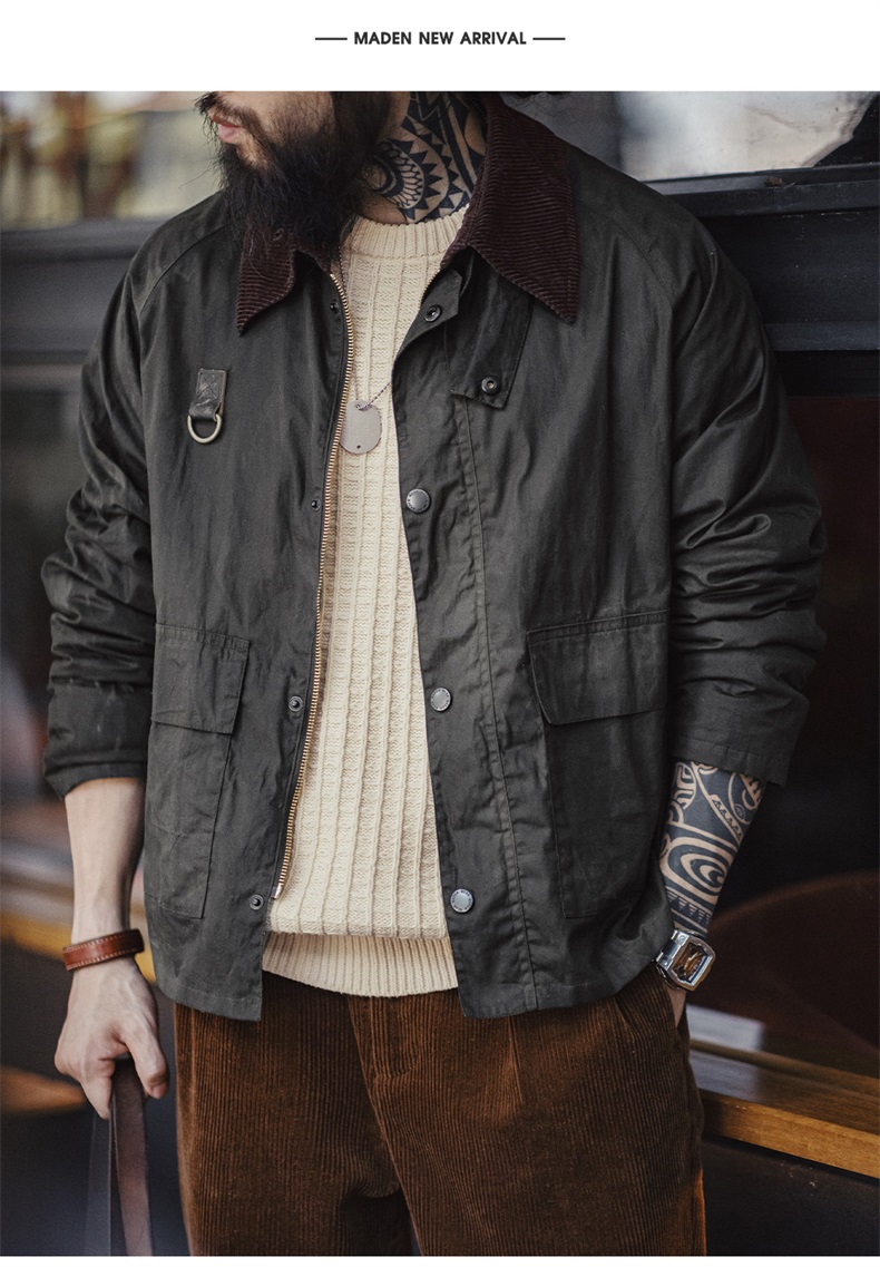 工装优选 美式复古Spey油蜡钓鱼夹克vintage做旧户外翻领外套男秋