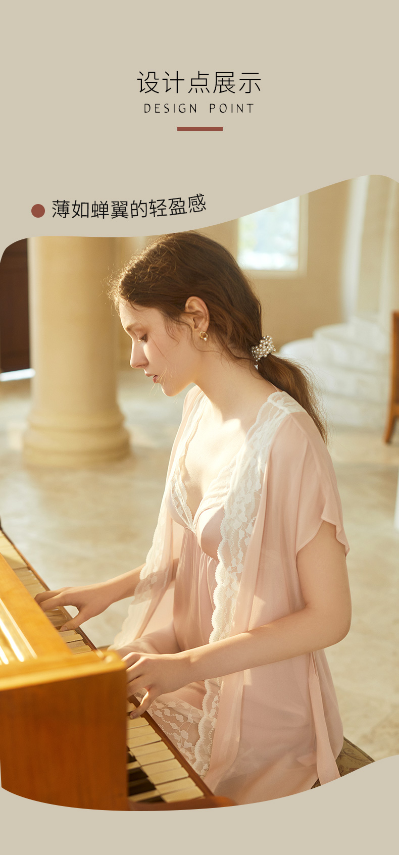 金三塔怦然心动系列睡袍法式短袖系带晨袍薄款桑蚕丝家居服 YSFCA198