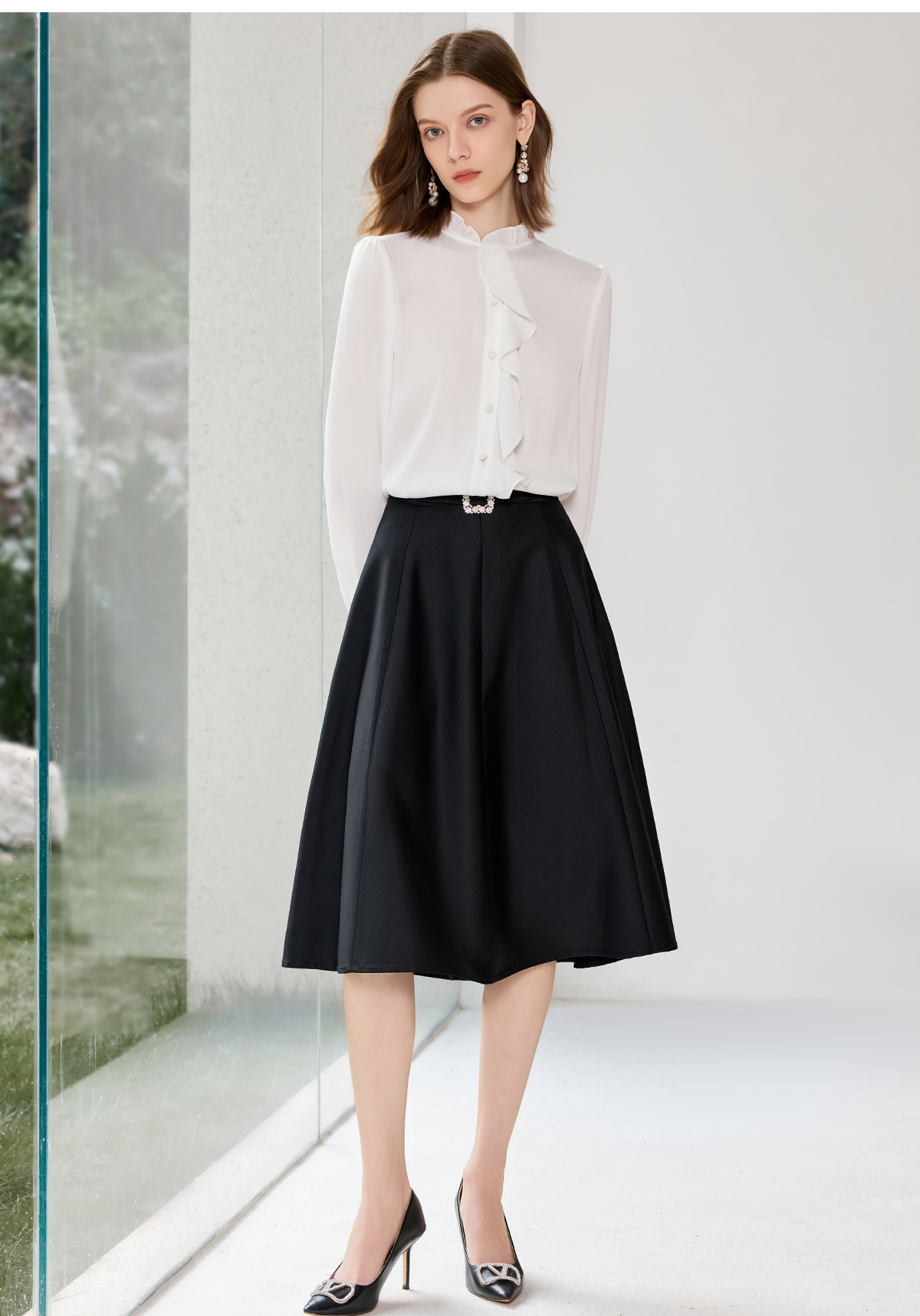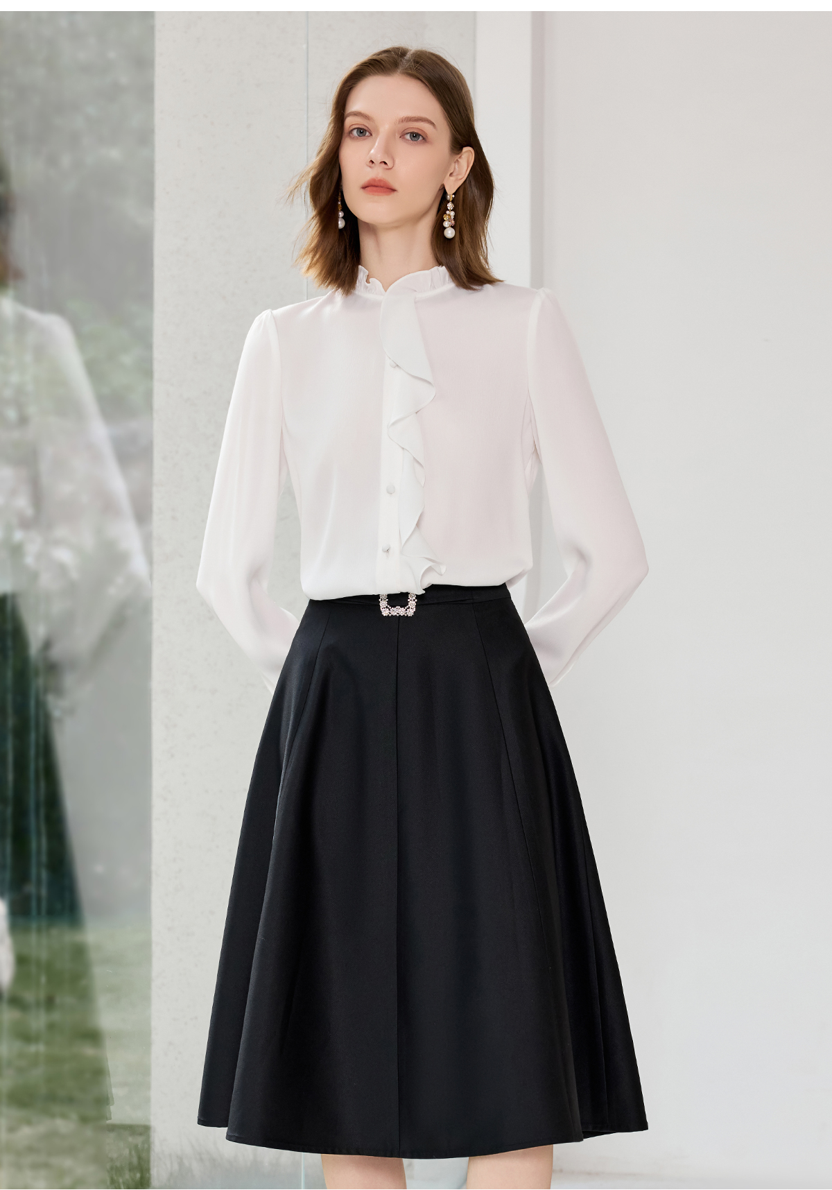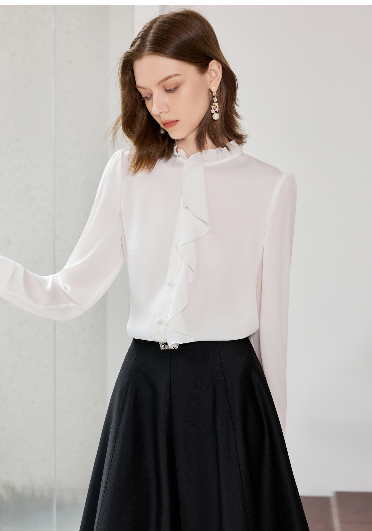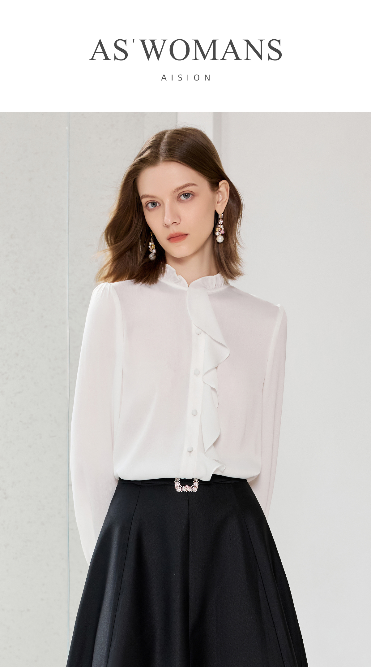 艾尚臣白色花边领衬衫套装裙女士法式长袖名媛衬衣轻奢高级感穿搭