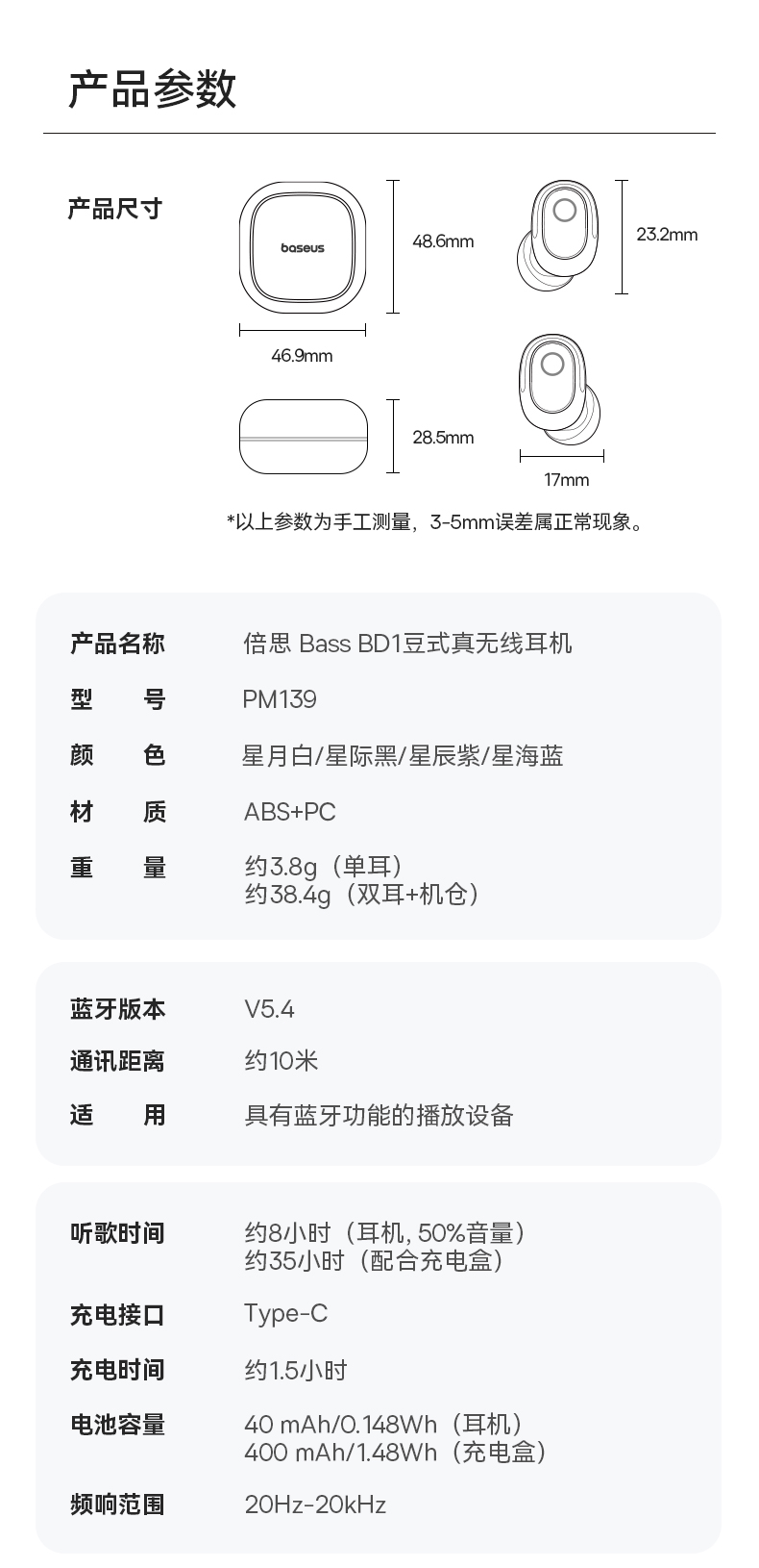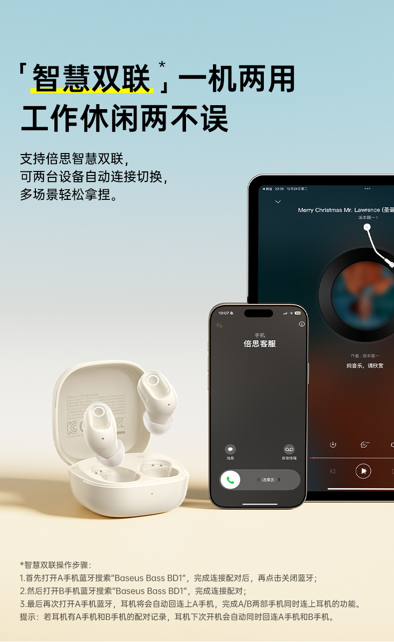 倍思 Bass系列 BD1 TWS真无线蓝牙耳机