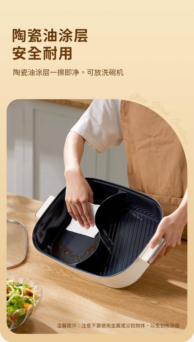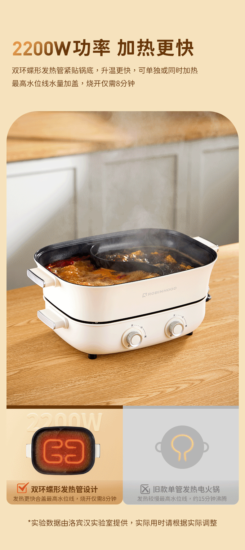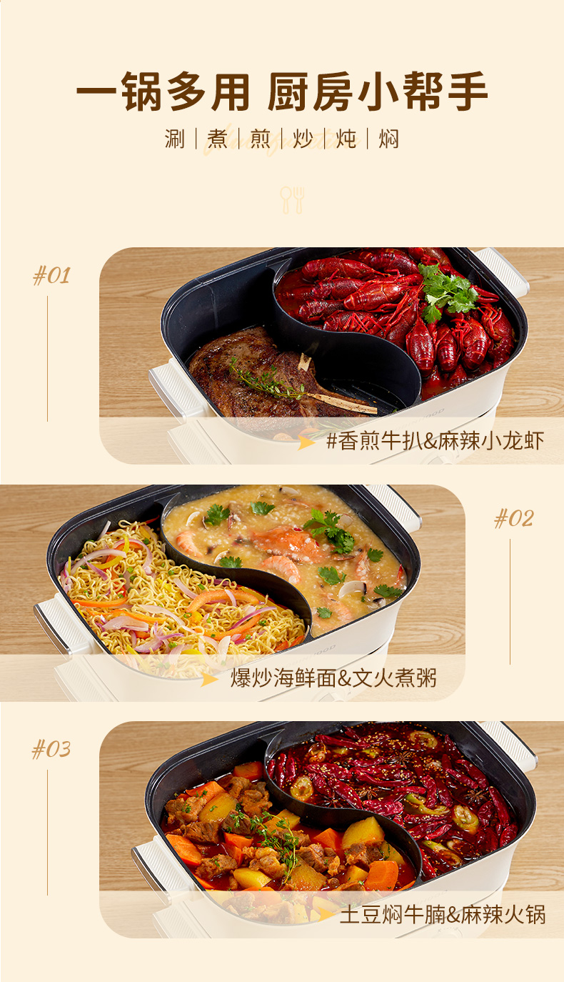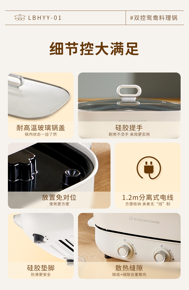 【文怡之选】洛宾汉 分体式鸳鸯锅LBHYY-01 电火锅 6.5L大容量 8.5CM锅深 双旋钮分区控温 一锅多用