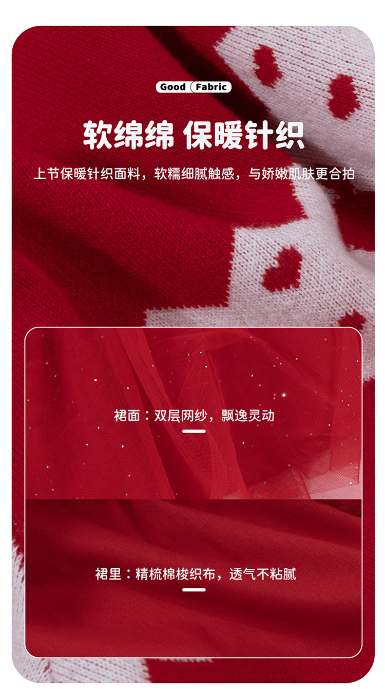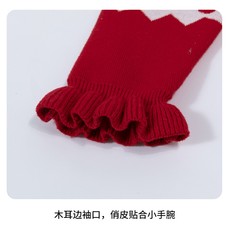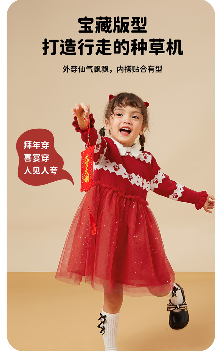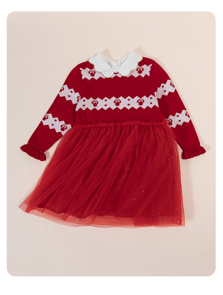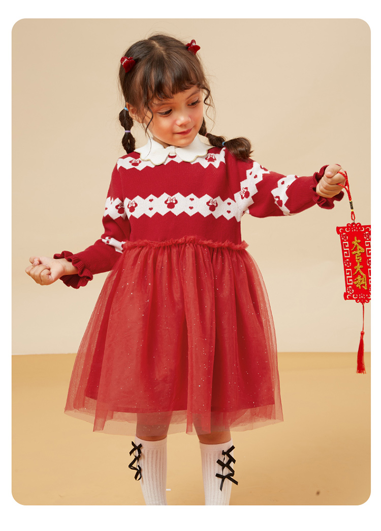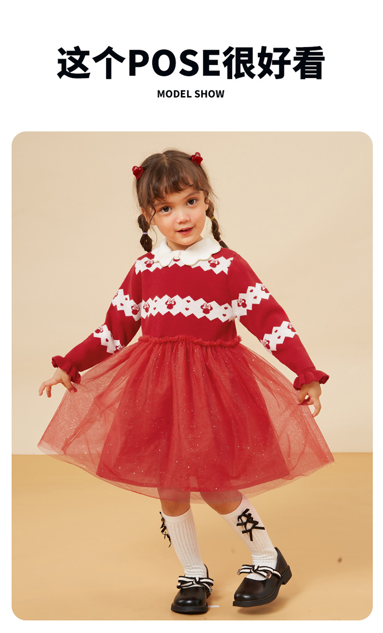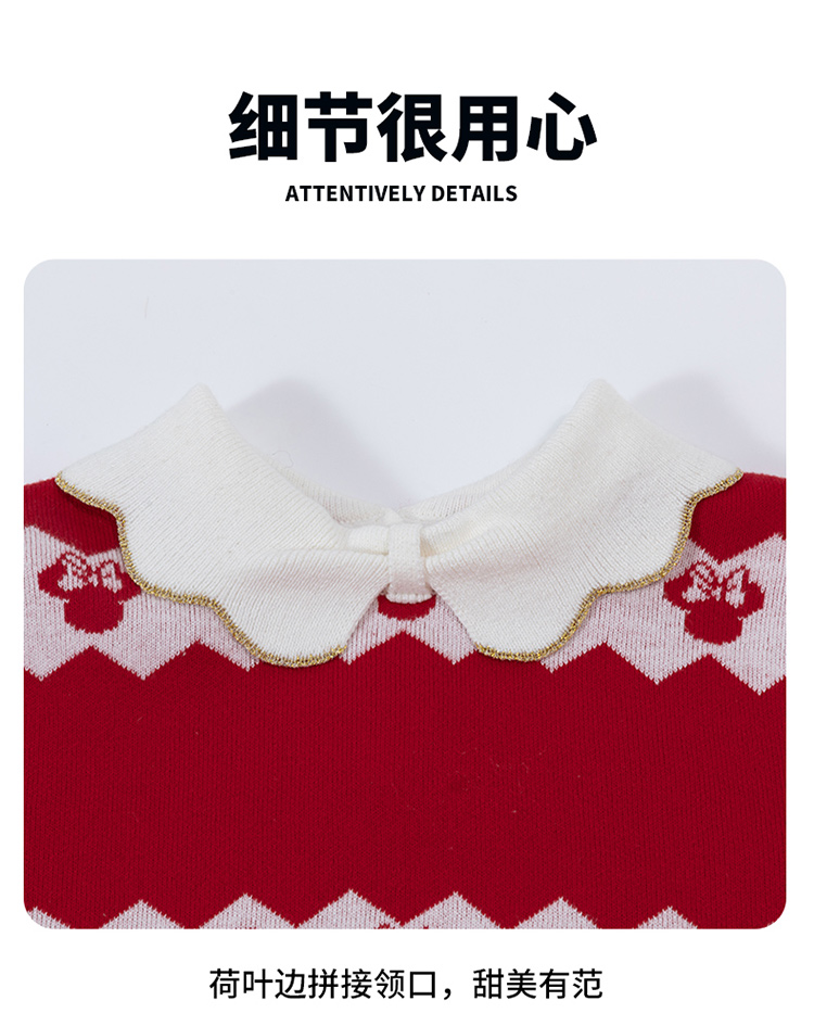 秋冬女童针织连衣裙米妮条纹印花大红公主裙百搭拜年233Q824