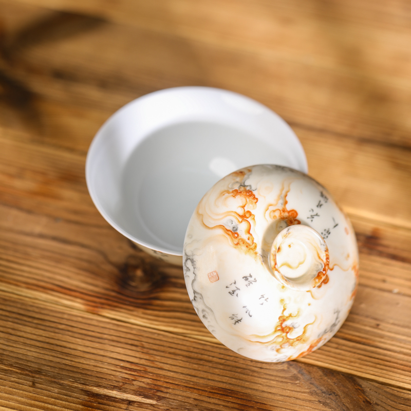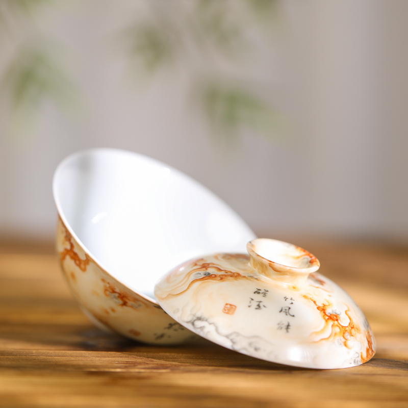 【忘言】 石纹诗文茶碗