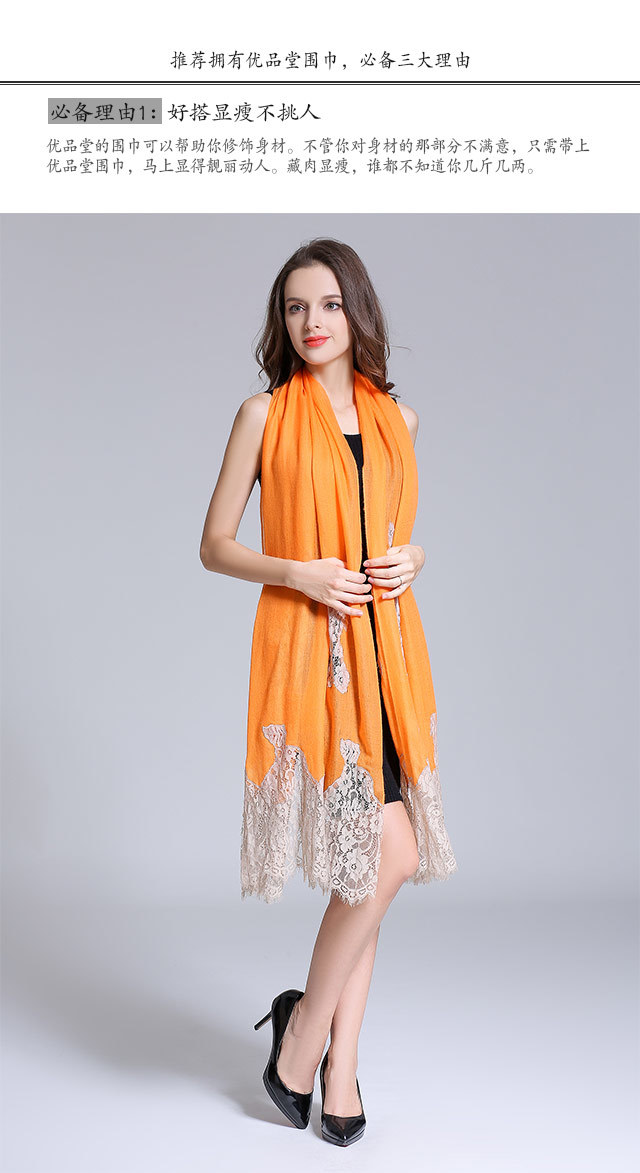 优品堂“典则俊雅”100%羊绒“软黄金”高档精品蕾丝披肩围巾