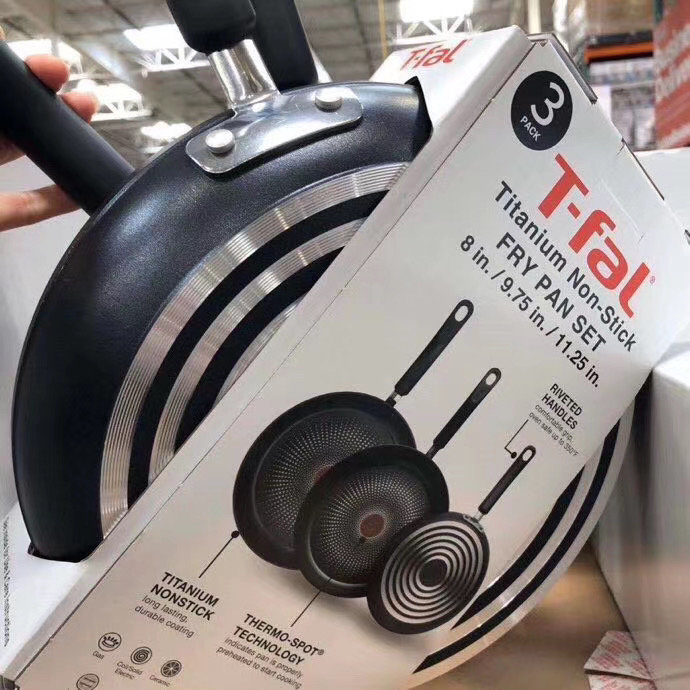 良心推荐,法国厨具大牌【T-Fal】平底不粘锅三件套:小20cm、中25cm、大29cm,一套三个¥428直邮到手!