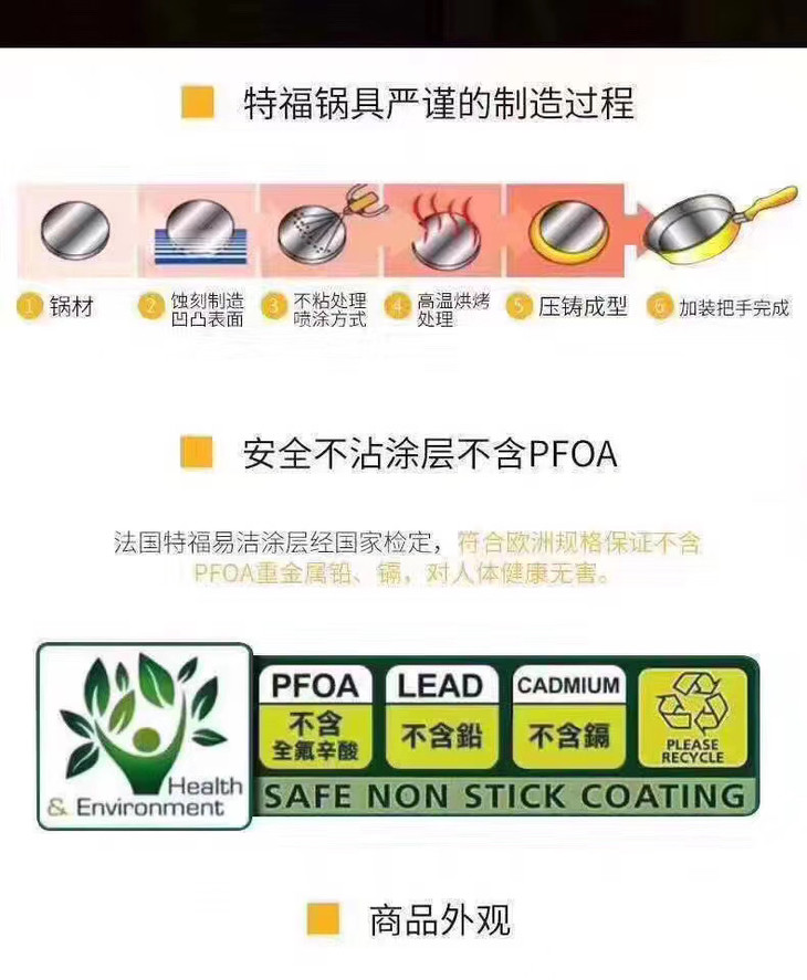 1️⃣采用了独特的 Prometal pro 不粘涂层,表层是耐磨的钛金属,具有极其优越的抗磨性耐用性,不易划伤、非常耐磨,不含有害物质。
