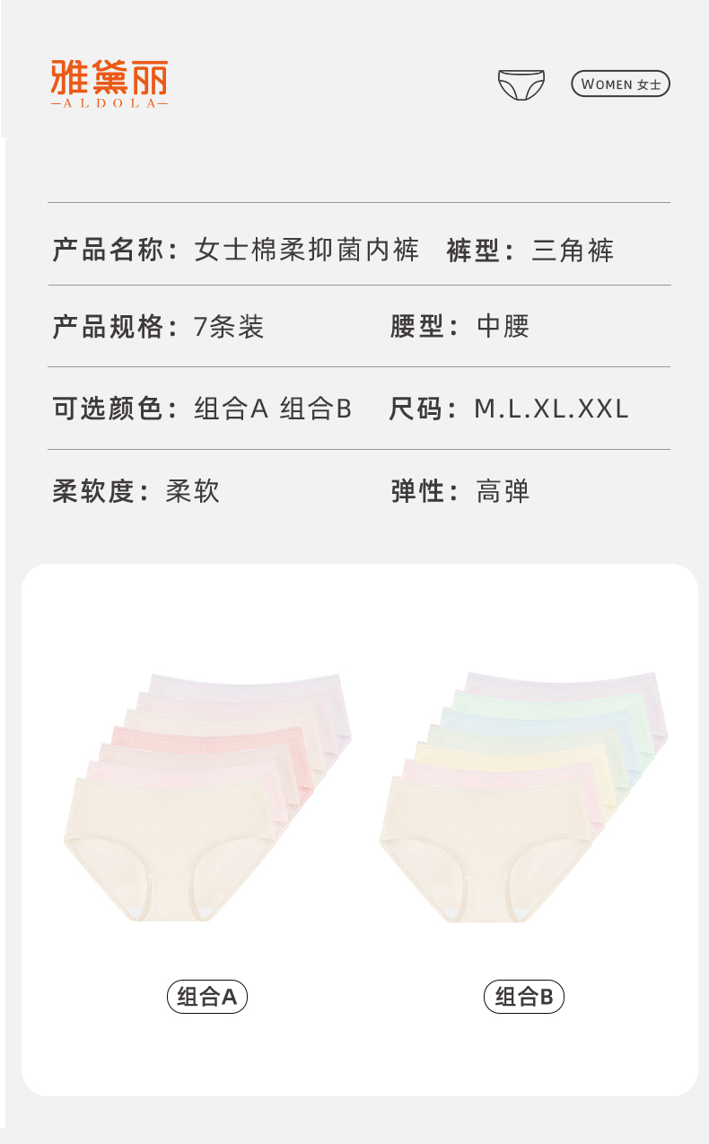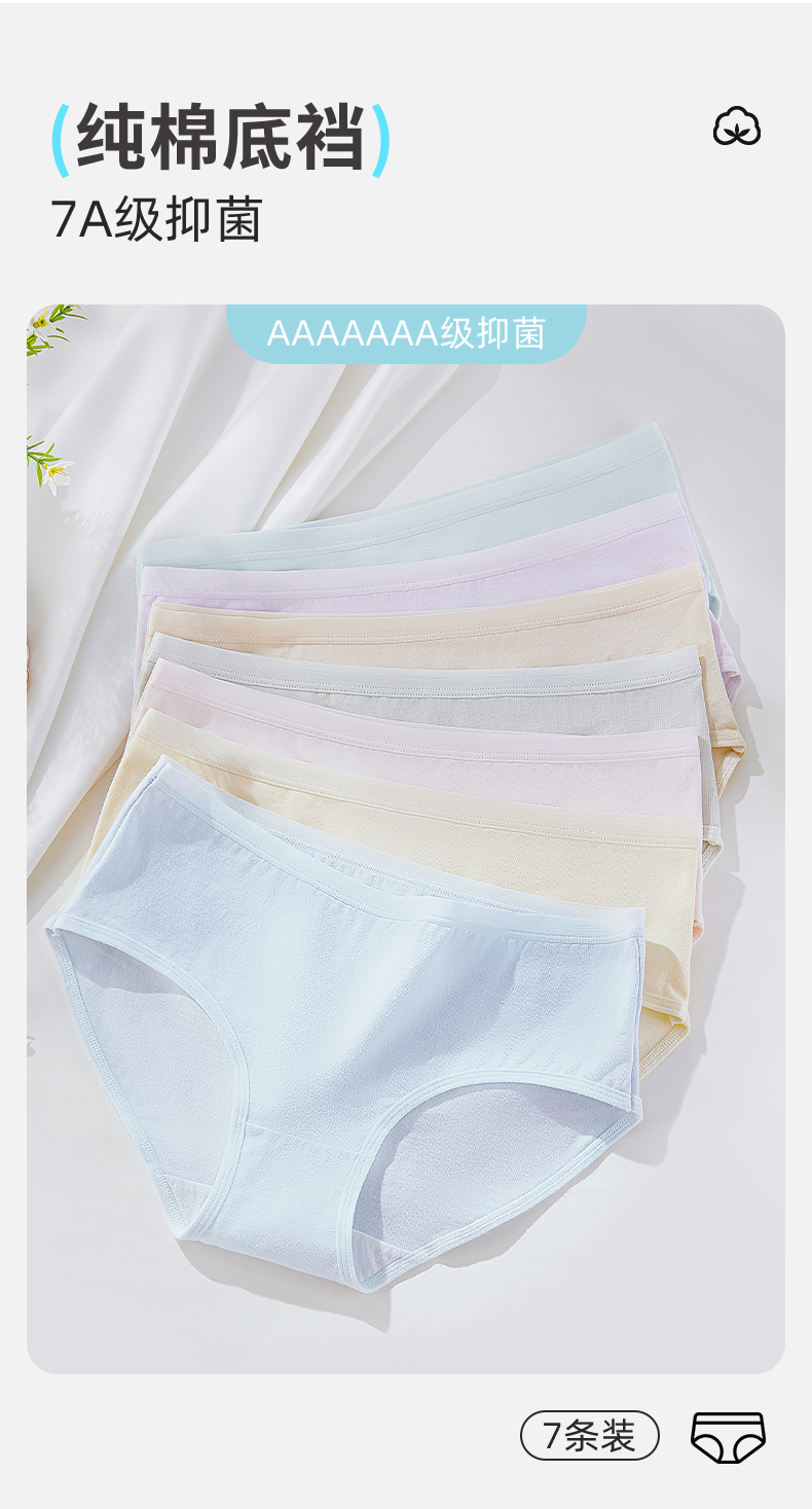 雅黛丽7a抗菌内裤女生纯棉不夹屁股中腰三角裤高弹短裤头星期裤女