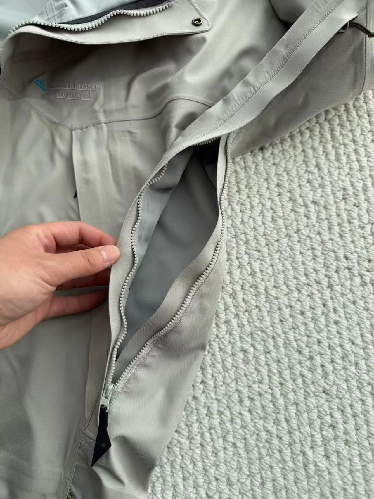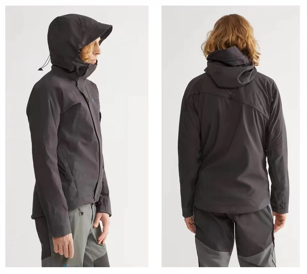 巨人岛户外运动硬壳冲锋衣男款,?Cutan三层防水透气面料采用品牌自研的无氟碳环保防水膜,防水指数20000mm、透气指数20000g/m2/24h,暴雨环境下可有效防渗漏,长时间运动也能快速排湿;面料克重仅148g/㎡,轻盈且带微弹性,活动无束缚,还解决了传统硬壳的“塑料感”与噪音问题。Duracoat耐磨涂层,在袖口、肘部、下摆等易磨损区域做加固处理,耐磨性提升约5倍,应对玄武岩、岩壁等粗糙地形时损耗更低。采用立体剪裁的中性版型,适配亚洲人身形,活动自由度高;(图中为月亮白),基础色百搭,新色更具户外风格。-?斜向主拉链:人体工学设计避开下巴摩擦,双向开合更便捷,且采用易更换结构,便于后期维护;-?3D立体风帽:可兼容头盔,单手即可调节,帽檐内侧弹性挡片减少风雪灌入;-?高位插手口袋:位置避开背包腰带/安全带,运动时取物不受干扰,口袋内衬为透气网眼,可配合腋下拉链增强通风;腋下配备超大透气拉链,运动时可快速调节体感温度;袖口抽绳可充当拇指孔,下摆抽绳能收紧防风,应对低温环境更保暖。