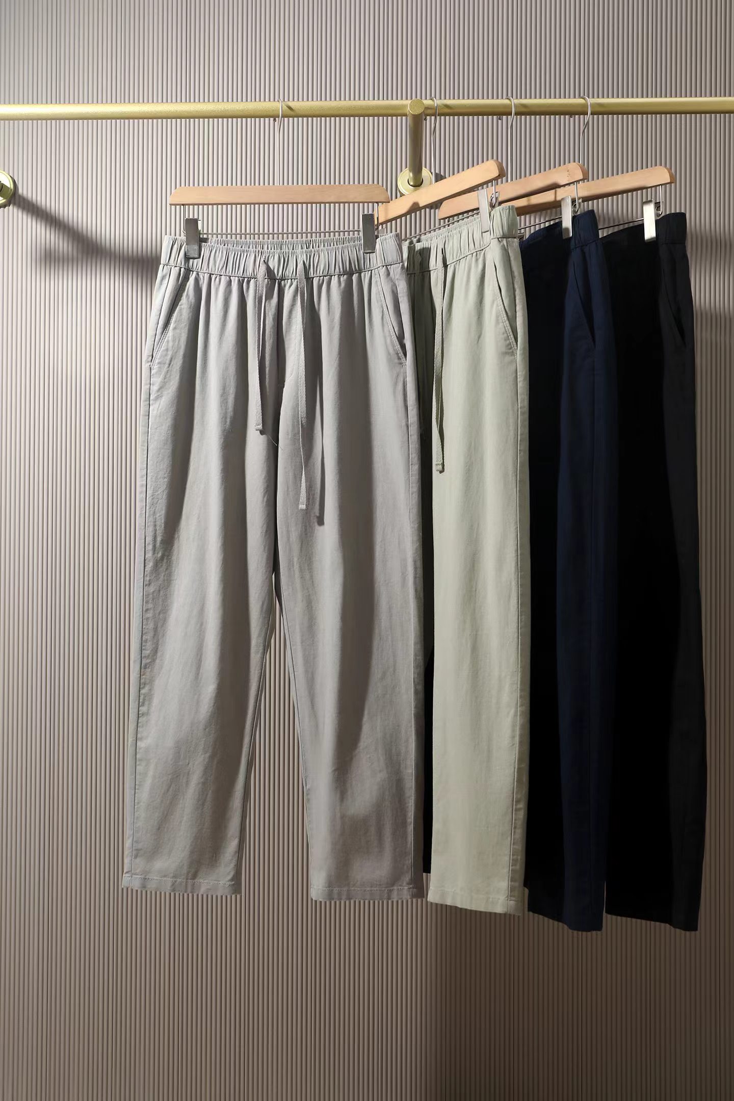 早春 松弛感穿搭| 会呼吸的面料!亚麻休闲裤, 呼吸的天然面料: 精选棉麻混纺,兼具棉的亲肤与麻的透气,带来全天候的干爽舒适。自然肌理,羔级质感: 面料保留独特的天然肌理与轻微骨感,赋予穿着者不费力的松弛与优雅。立体剪裁,修身挺括: 利落线条与适度余量结合,修饰腿型,活动自如而不失轮廓感。