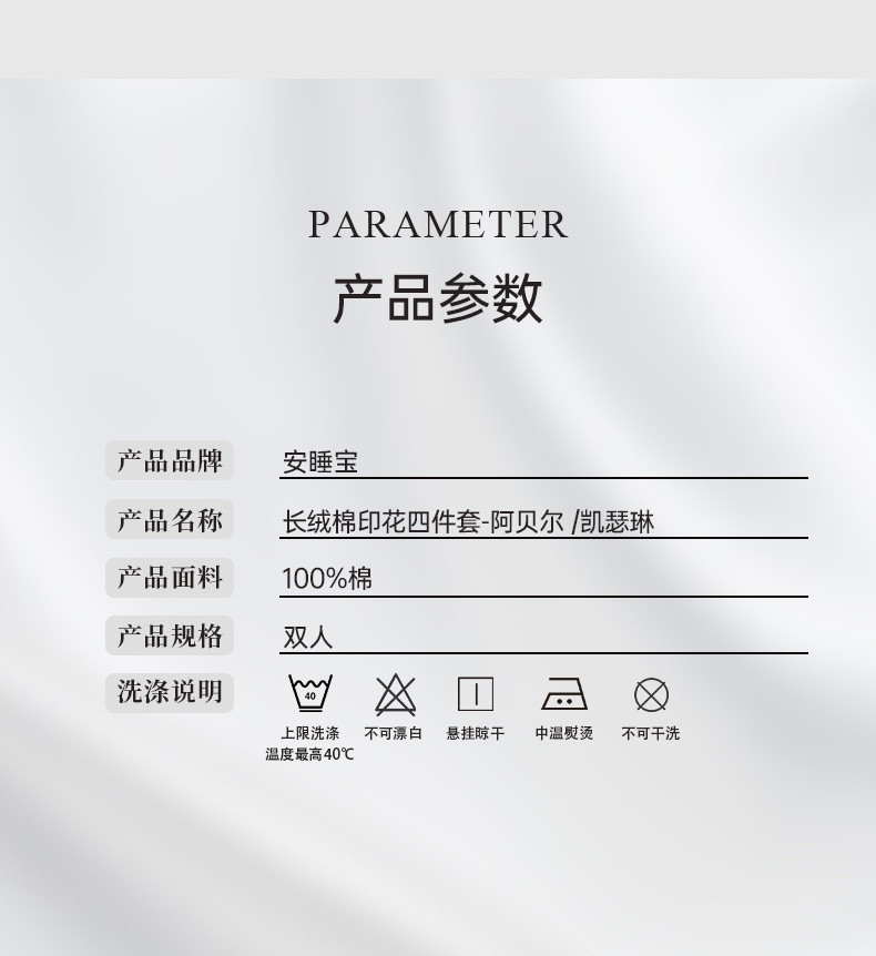 【云粉节】10楼 安睡宝 长绒棉印花双人四件套-阿贝尔/凯瑟琳 吊牌价2599元 活动价699元