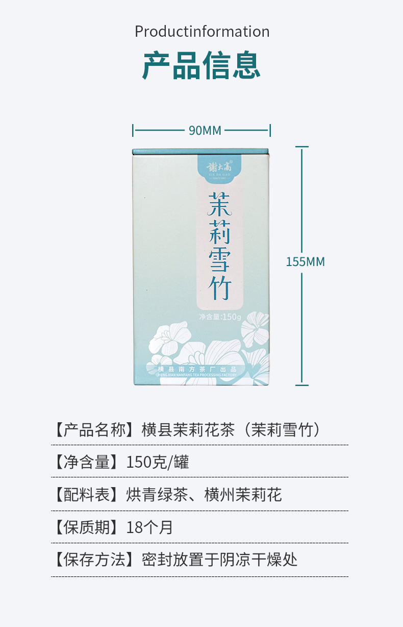 【品名/规格】【谢大高】茉莉雪竹(七窨一提)(150g*2罐)赠精美手提袋