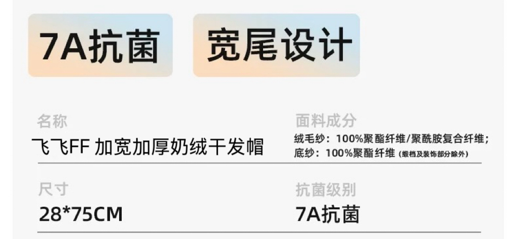 【FF飞飞 加宽加厚奶绒干发帽】140克加厚一条,轻柔透气,云般舒适,高效吸水,尾部加宽~