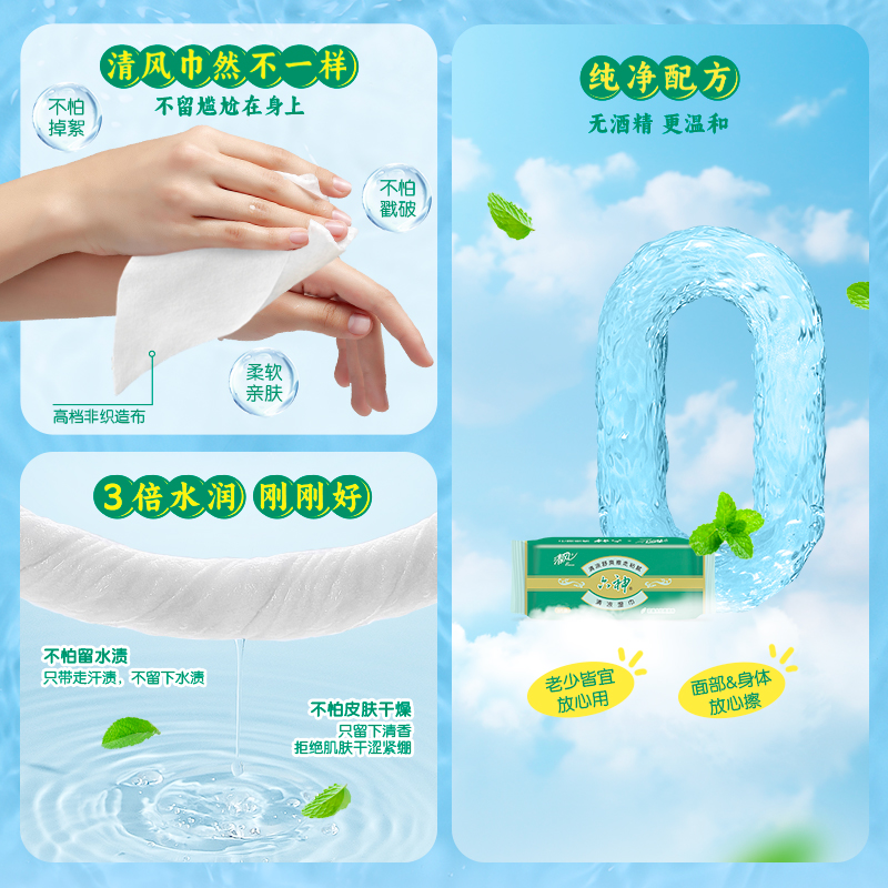 清风联名湿巾便携8片/包清凉湿纸巾迷你旅行装清爽随身装