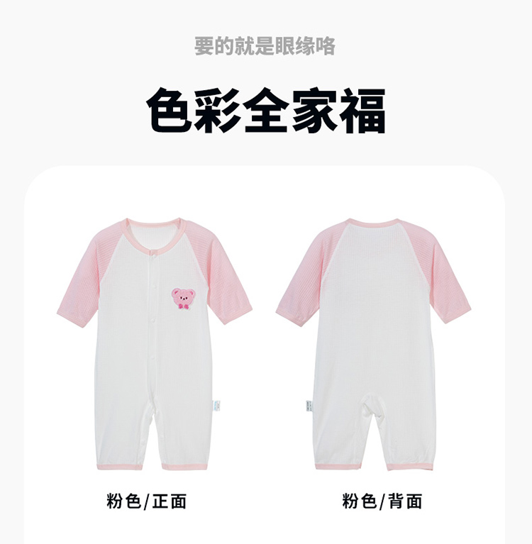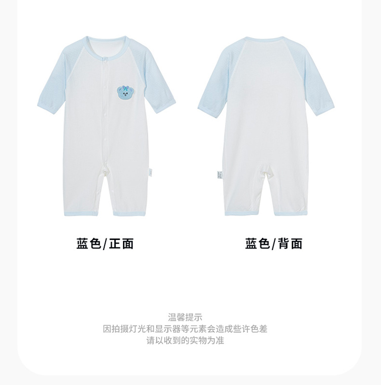 贝贝怡童装婴幼儿空调连体衣夏季长袖2024新款男女宝宝纯棉哈衣夏ZB1DL021