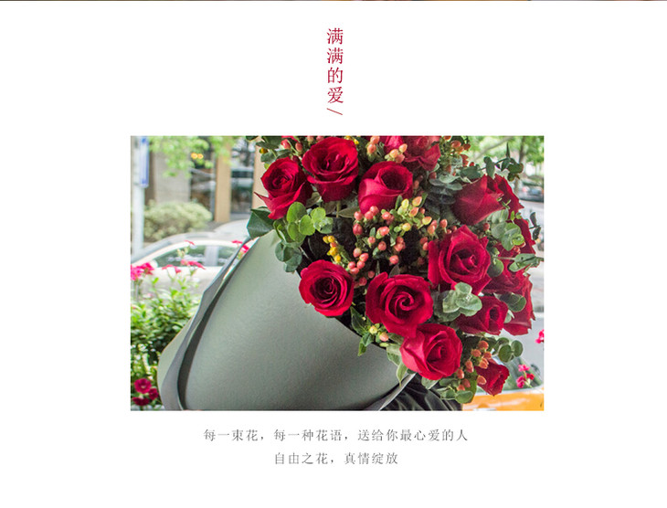 满满的爱-33支红玫瑰尤加利叶抱抱桶-全国鲜花速递同城鲜花店配送生日花北京上海杭州广州深圳订花送花