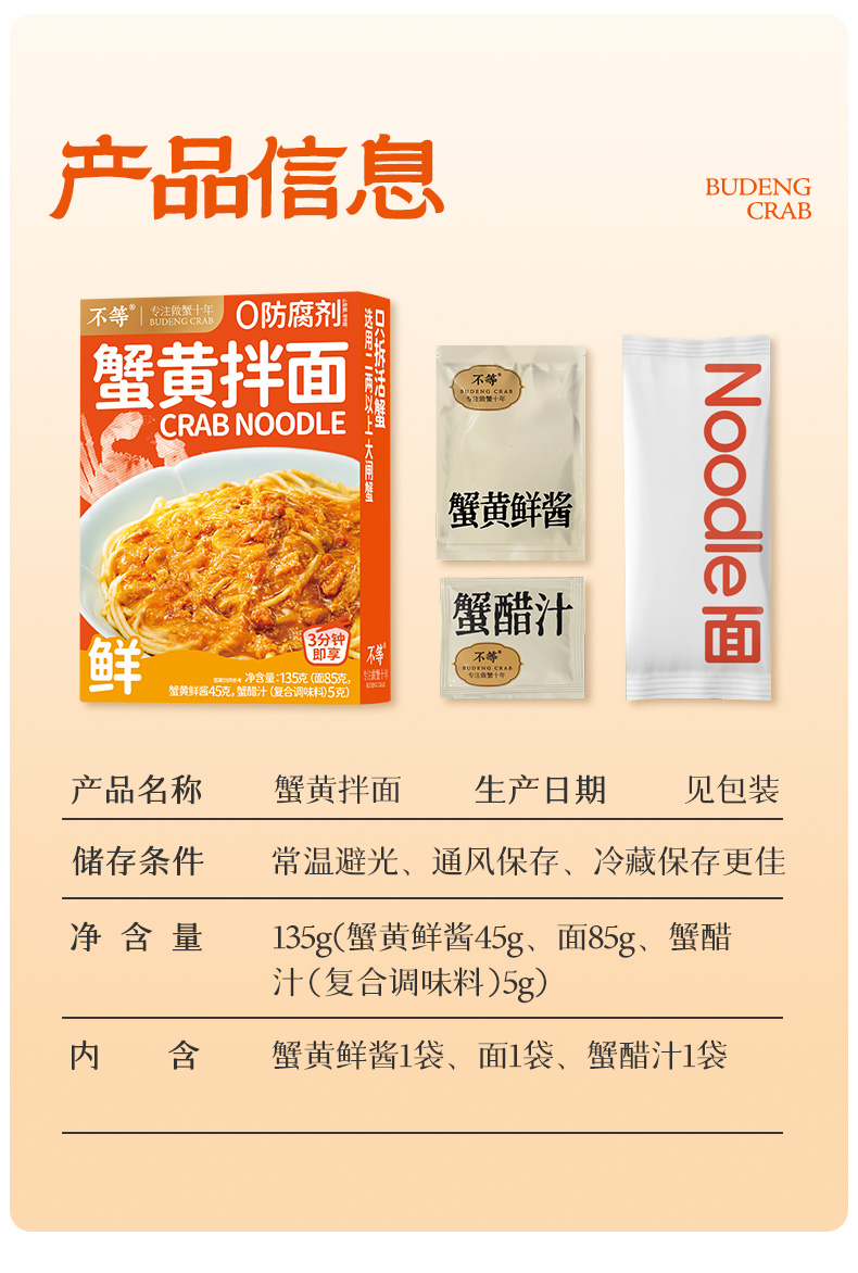 【不等】蟹黄拌面正宗大闸蟹蟹黄蟹肉拌面135g/盒