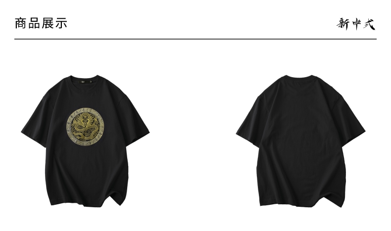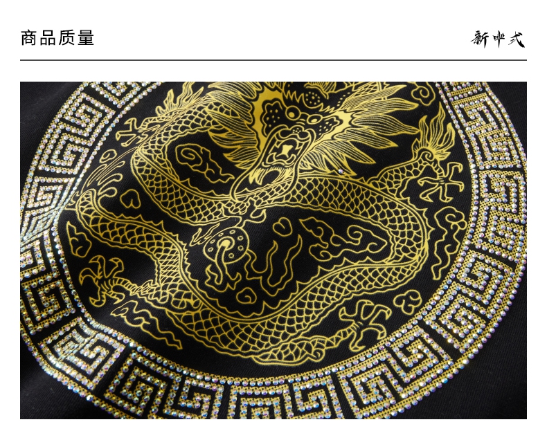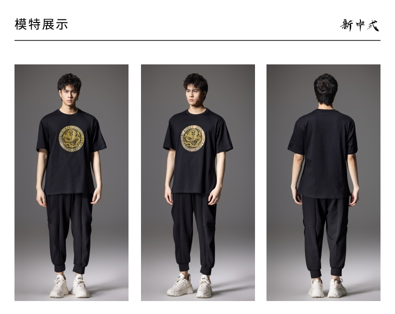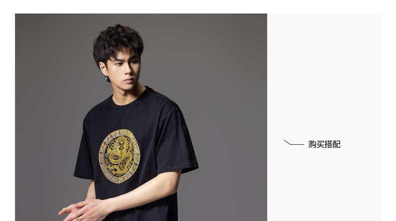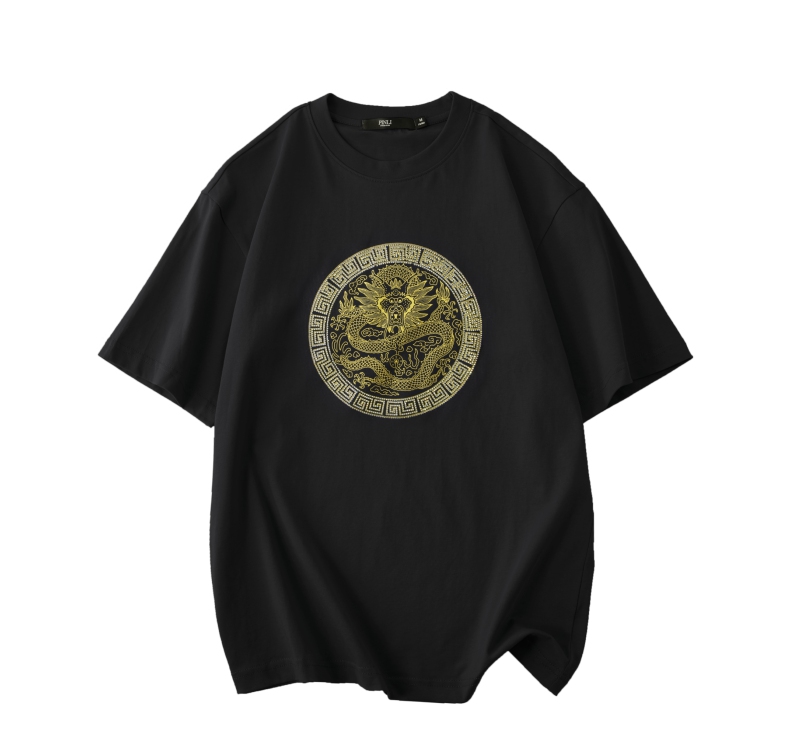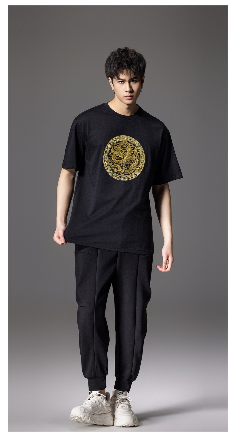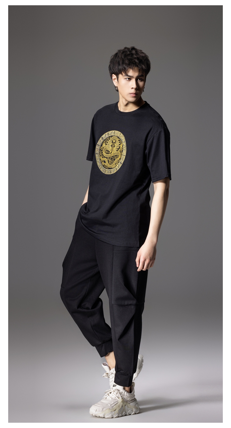 PINLI品立新中式2024夏季新款盘龙印花烫钻短袖T恤男国潮圆领上衣BG242111015
