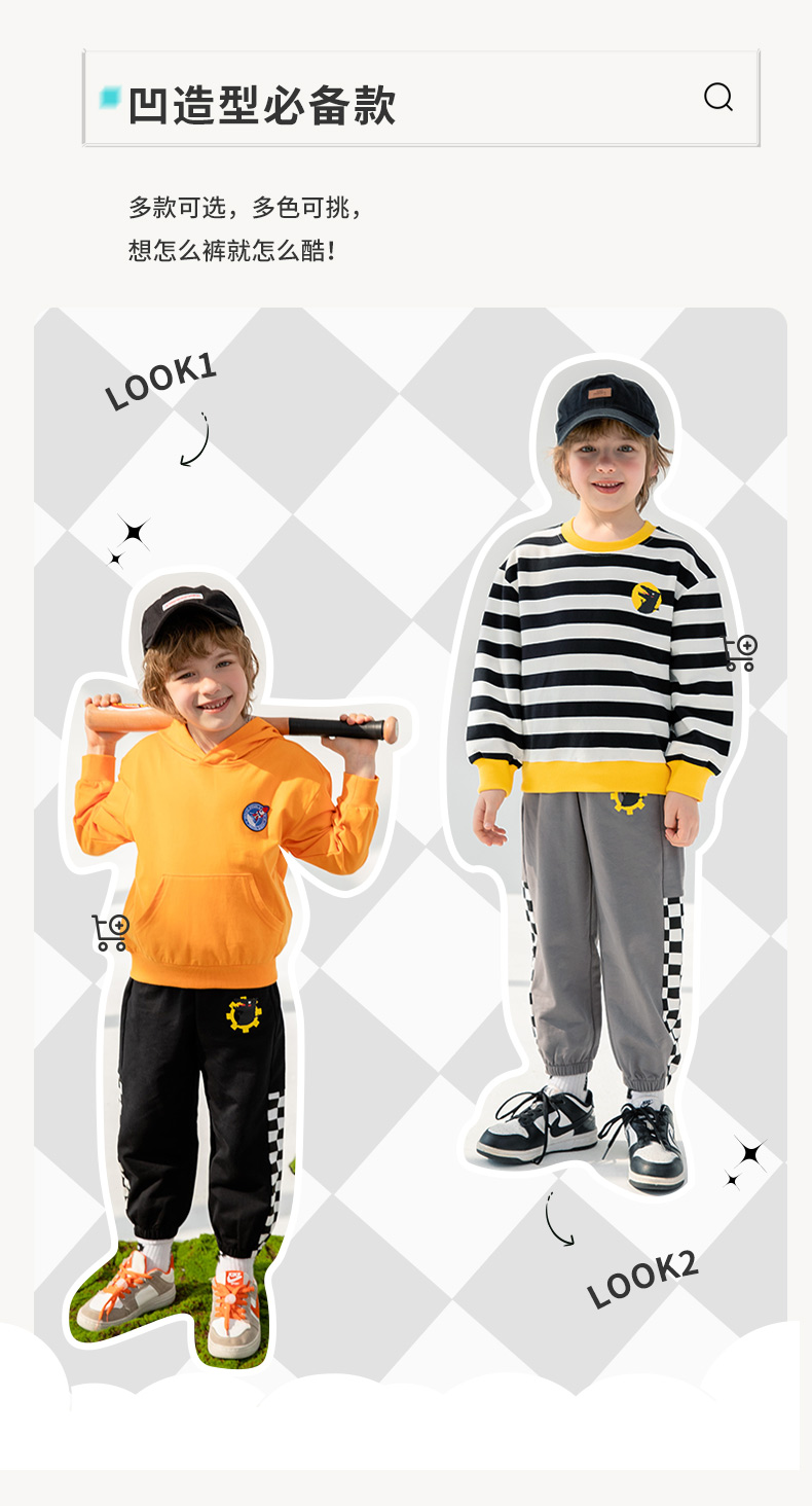 贝贝怡中大童休闲长裤男童裤子春秋新款宽松中大童运动裤儿童长裤