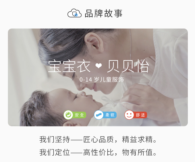 - 贝贝怡专注0-6岁婴幼儿服饰,坚持安全、柔软、舒适的产品理念,为千万中国家庭提供超高品质、安全可靠的婴幼儿服饰产品,妈妈放心,宝宝开心!