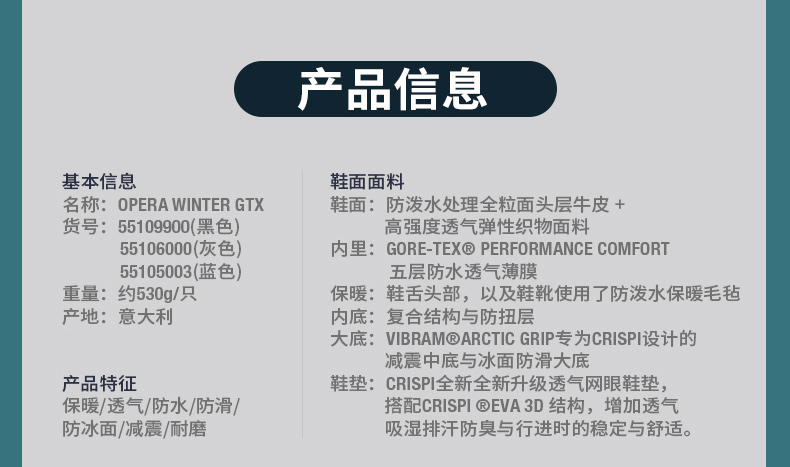 CRISP户外运动防水防滑保暖徒步登山鞋男士 55103100