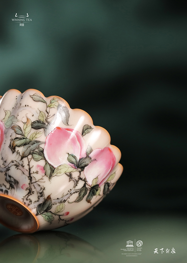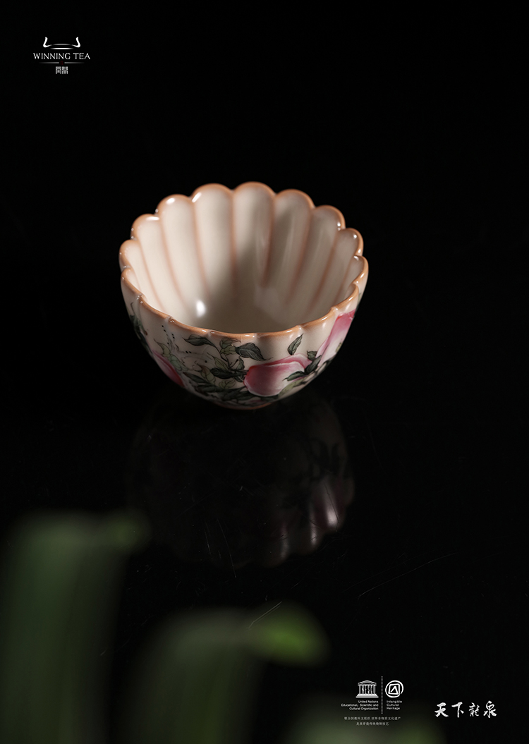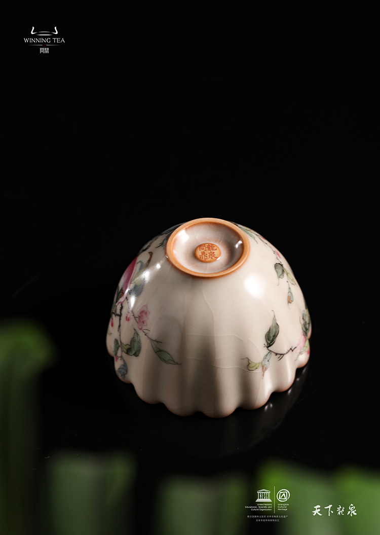 龙泉问鼎彩绘哥窑蕊香杯(三桃)