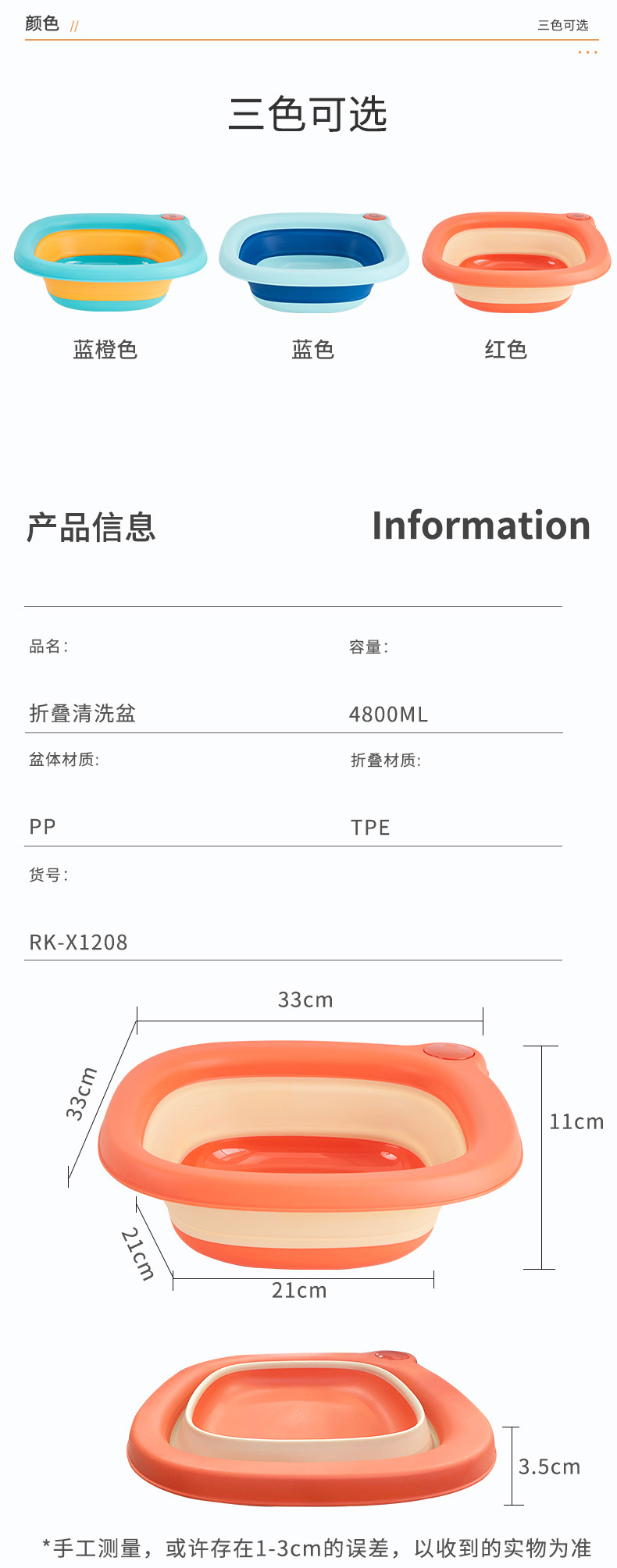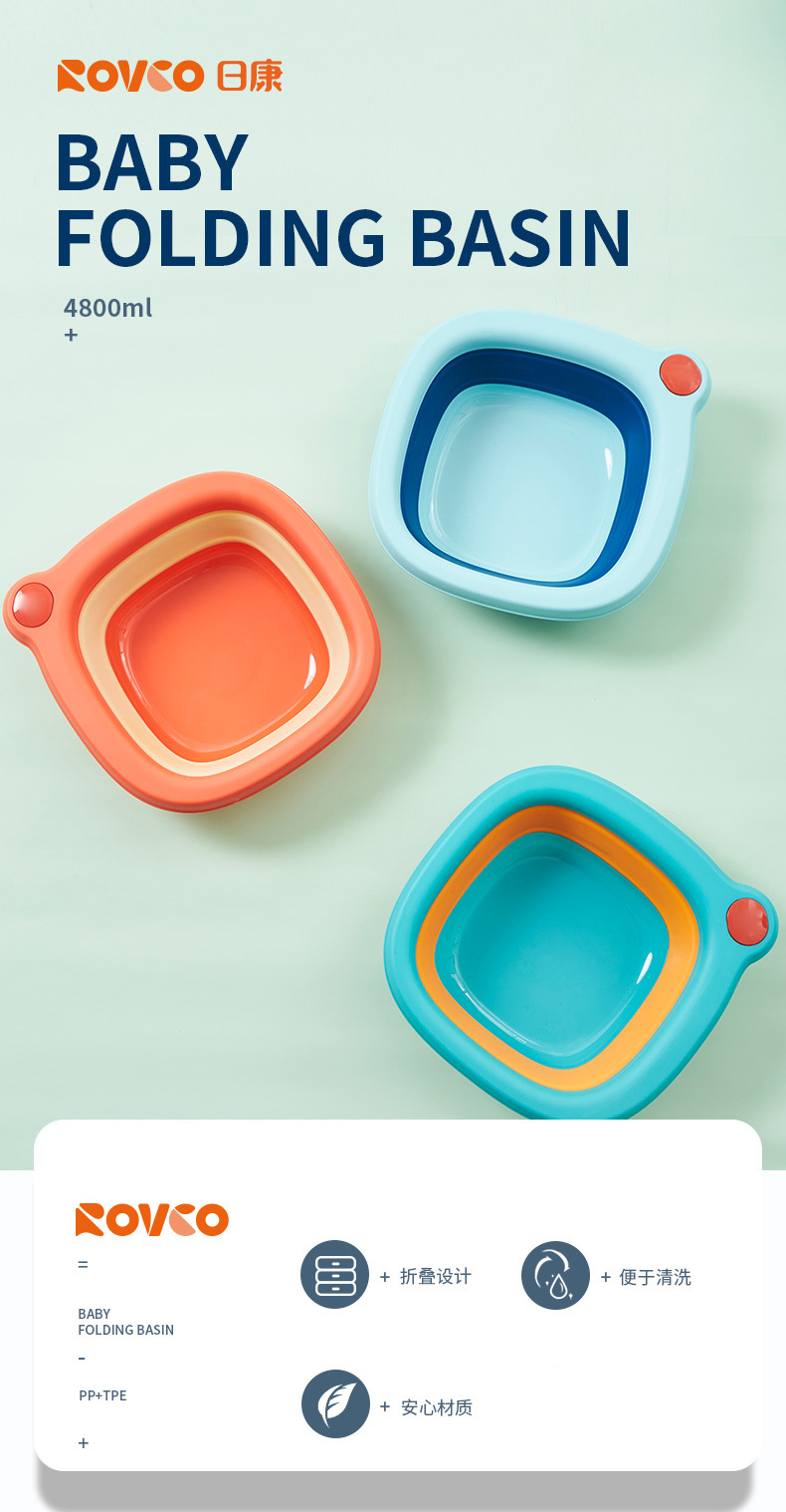 【便携折叠设计】日康婴儿折叠脸盆新生儿洗脸盆宝宝盆洗脚洗pp盆便携式儿童折叠盆