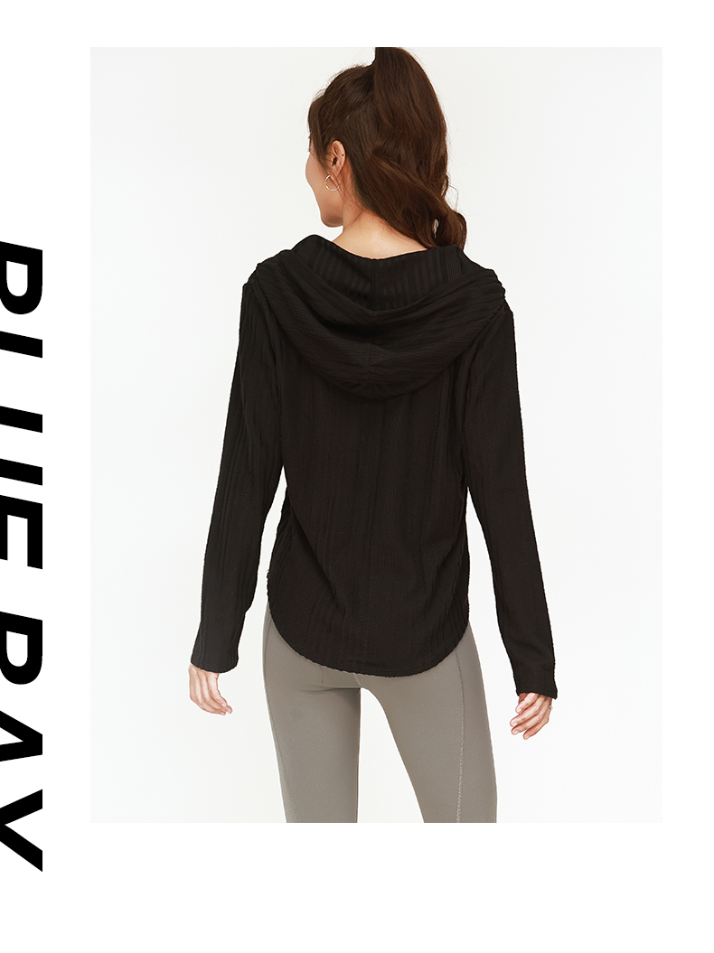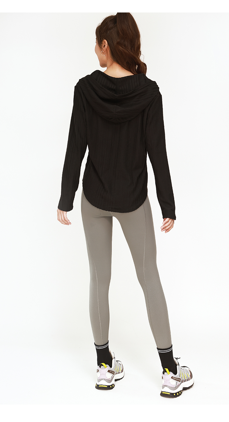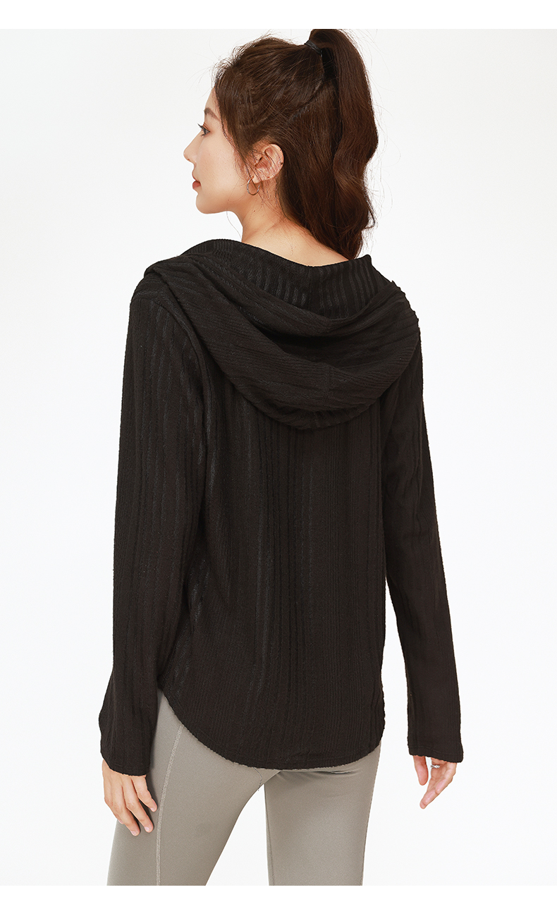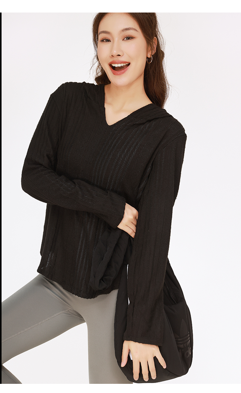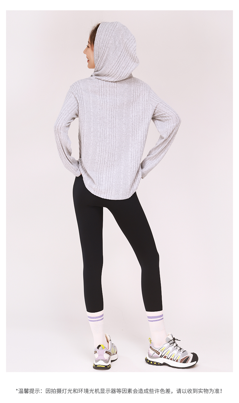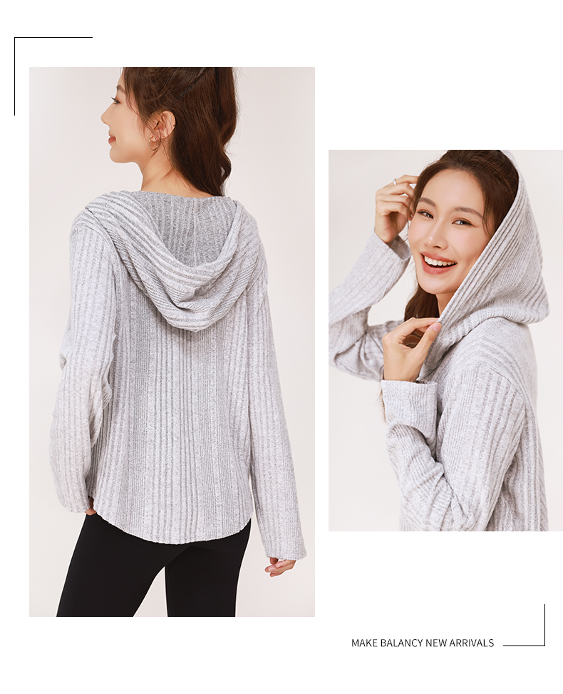 Makebalancy/慕柏郦瑜伽运动上衣连帽毛绒条宽松柔软气质显瘦1852