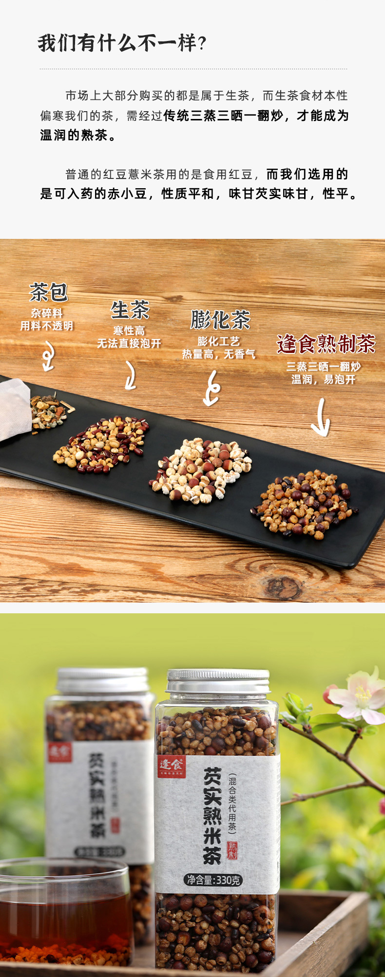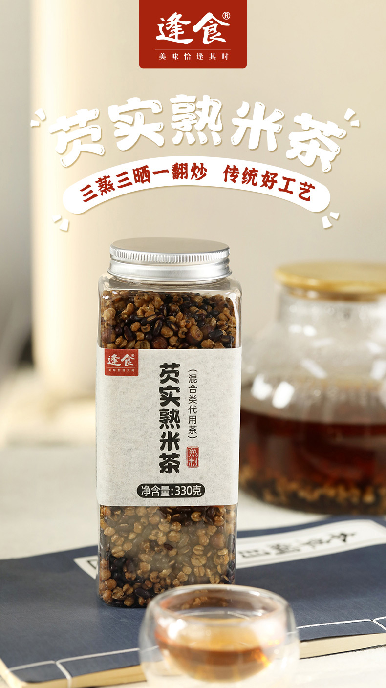 【清心湖甄选】赤小豆薏米芡实茶330g/瓶 柴火蒸制熟制茶 三蒸三晒易吸收 祛湿刮油 入口谷物焦香浓郁 传承古方经典搭配 可以干吃(味如锅巴)