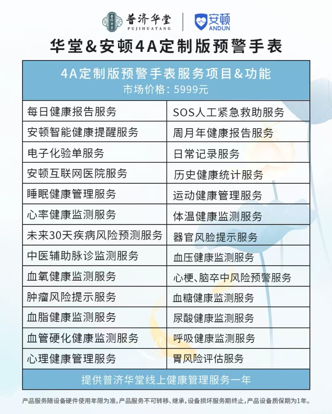 安顿华堂&安顿【4A定制版 预警手表】无创免针血压趋势体温动态血糖趋势监测25项服务智能健康手表