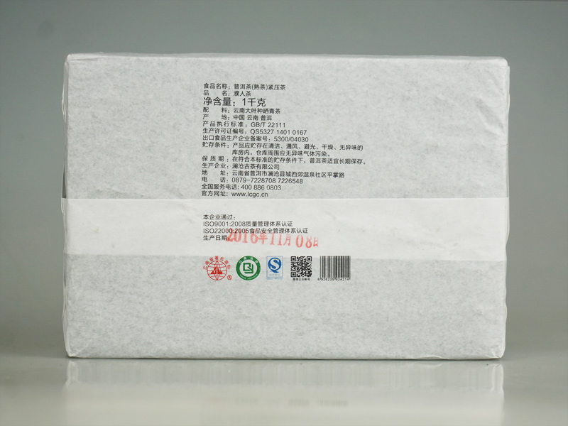 澜沧古茶2016年濮人茶砖普洱熟茶1000g/砖
