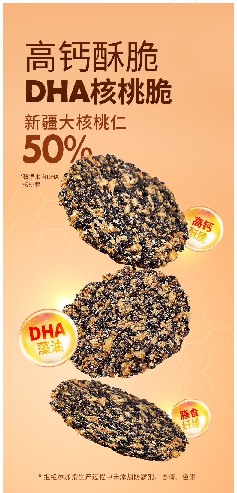 优选新品 | 集信堂DHA核桃脆 添加50%新疆大核桃仁,加入DHA藻油 ,轻甜不腻,酥酥脆脆,满口芝麻香,独立袋装 108克/盒