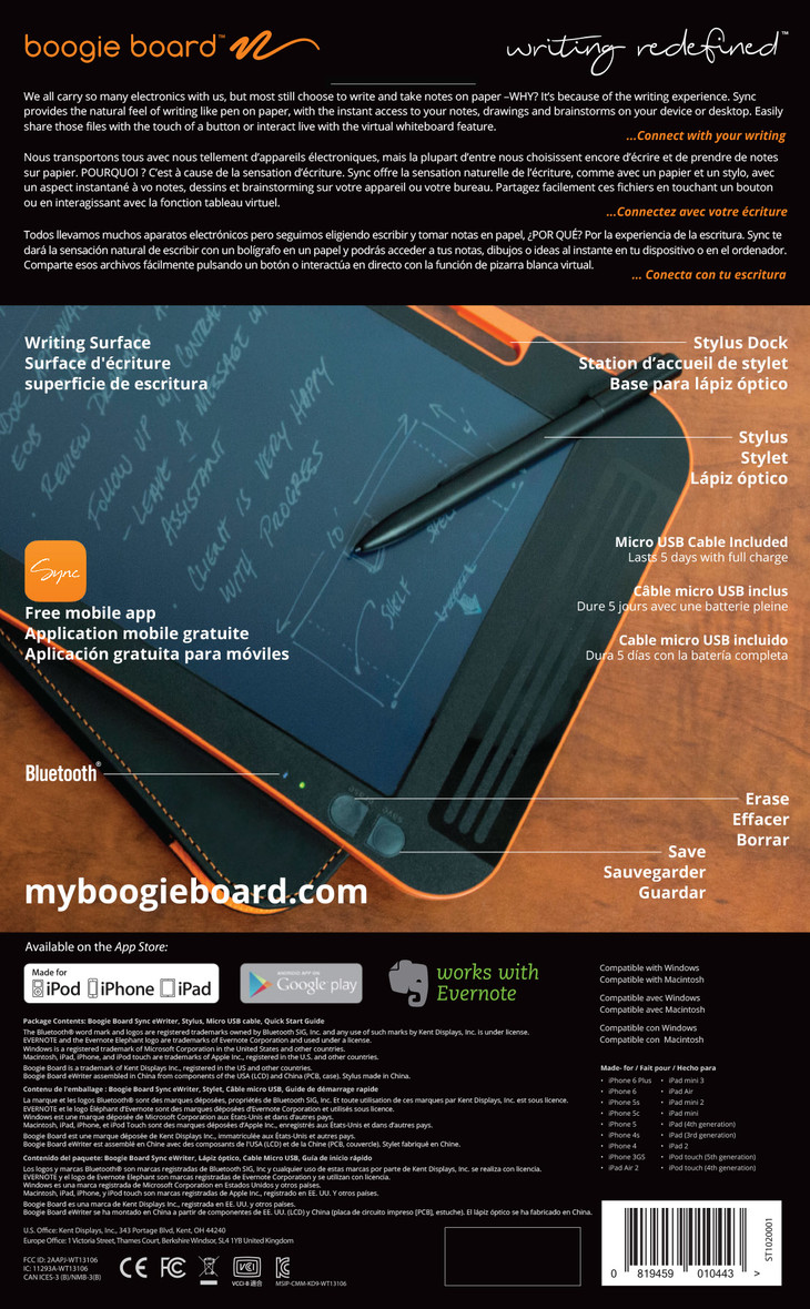 Boogie Board 还通过了 FCC, CE 以及毒性安全认证,是一款安全、绿色的产品,给孩子涂鸦放心。