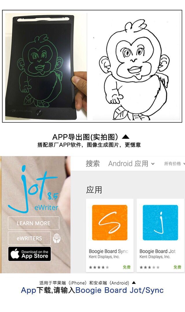 苹果用户,可以轻松在Apple Store中下载(搜索Boogie Board Jot)或(Boogie Board sync)。