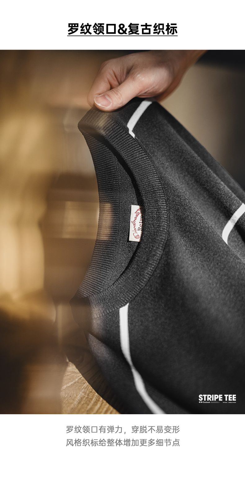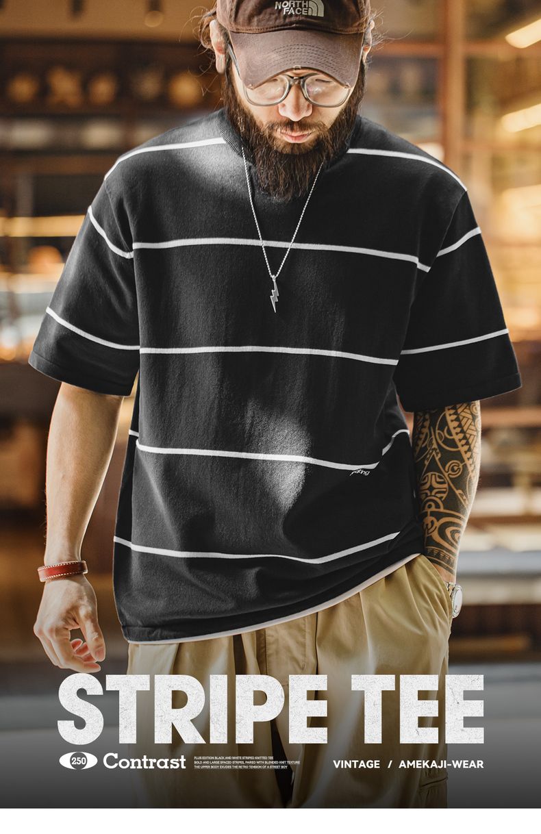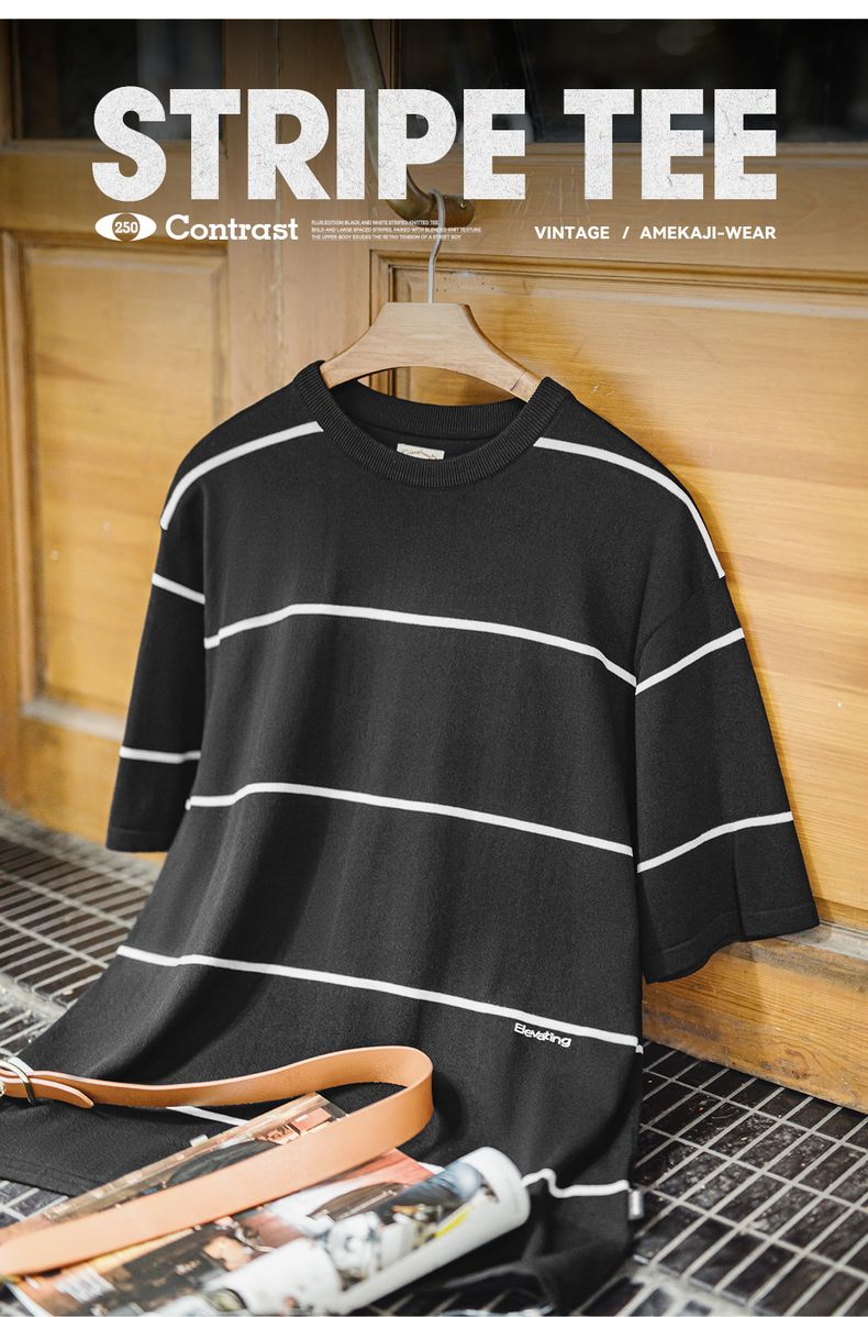 工装优选美式休闲黑白撞色条纹T恤Cityboy半袖日系圆领短袖男夏