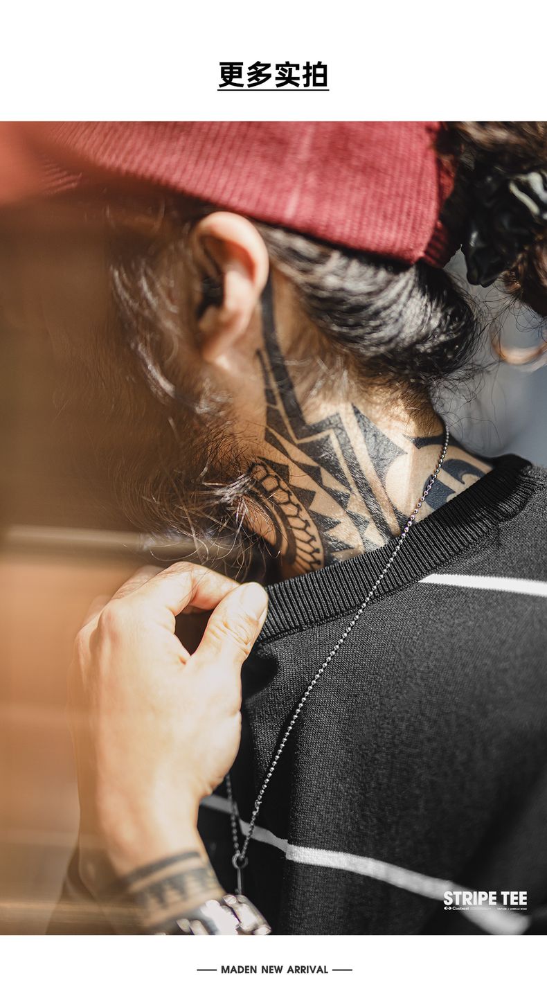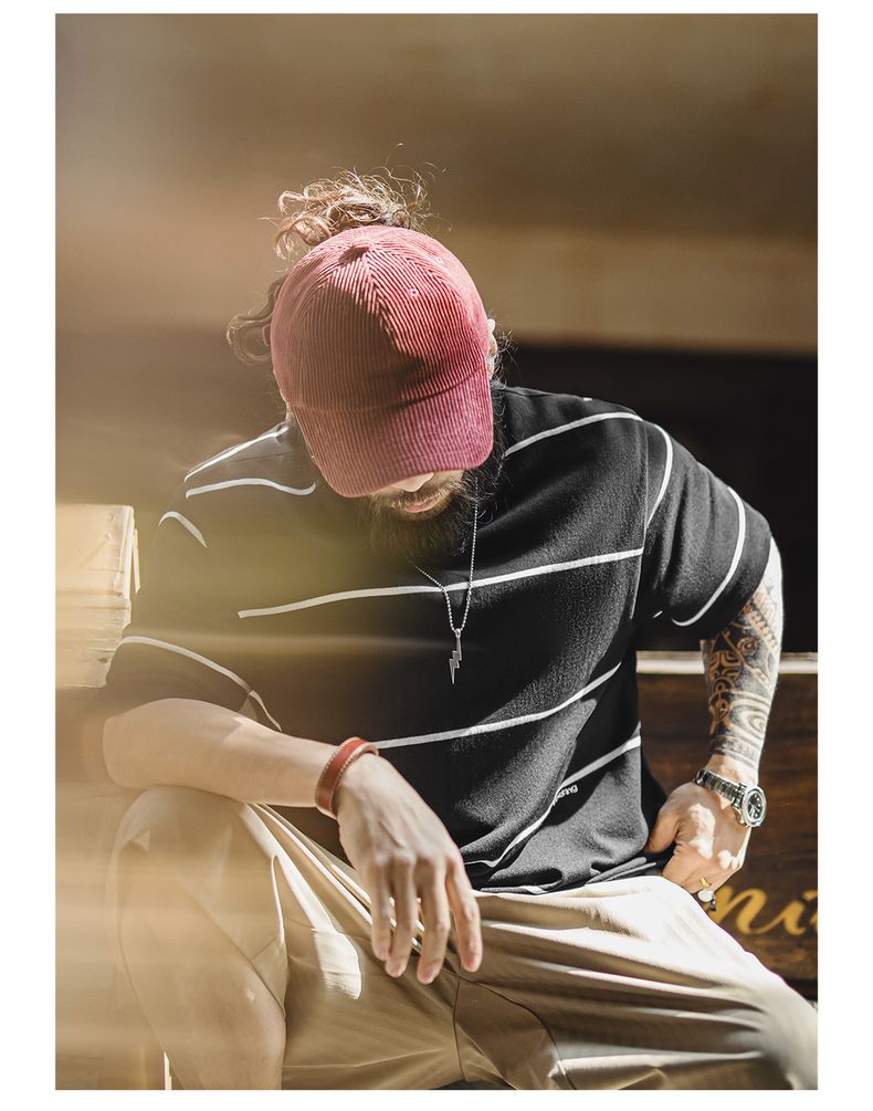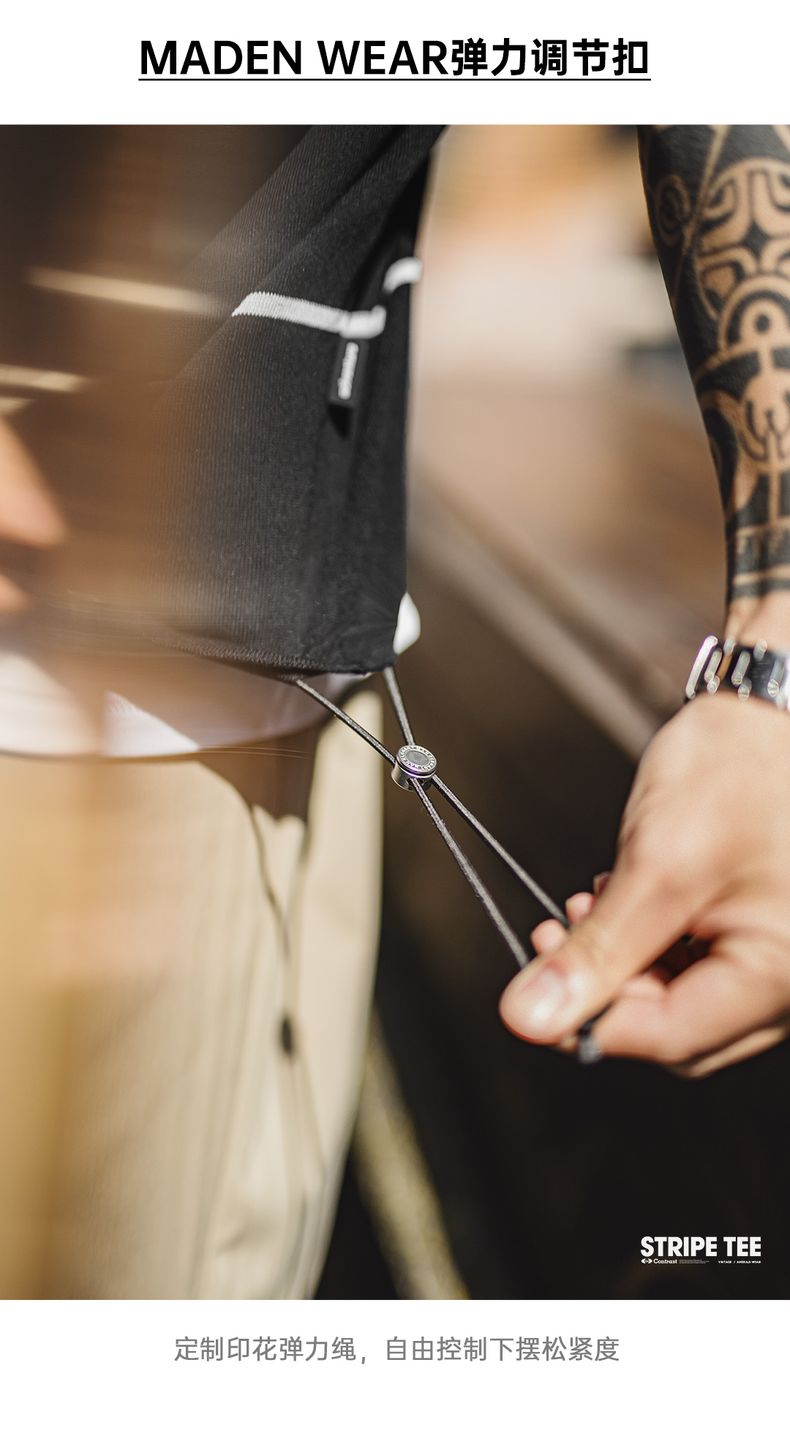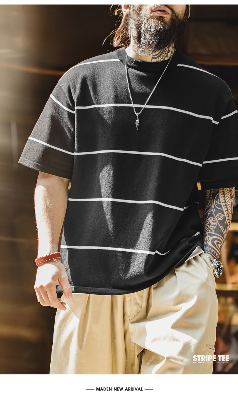 工装优选美式休闲黑白撞色条纹T恤Cityboy半袖日系圆领短袖男夏