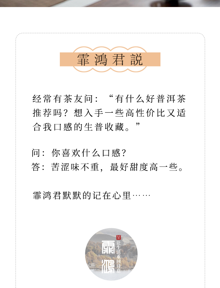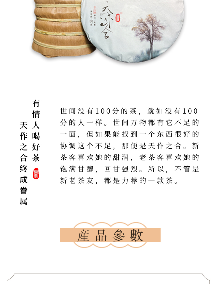 霏鸿茶叶 云南普洱茶生茶饼 2021年头春头采古树纯料 天作之合357g