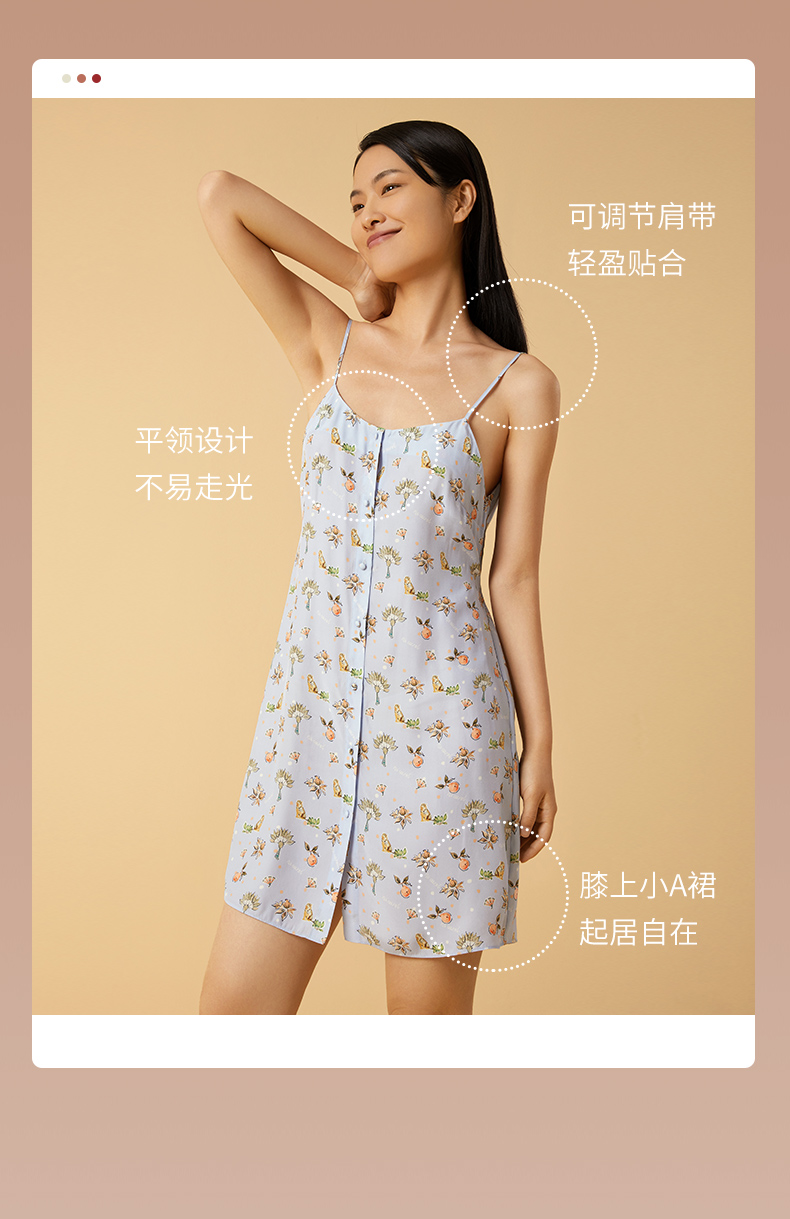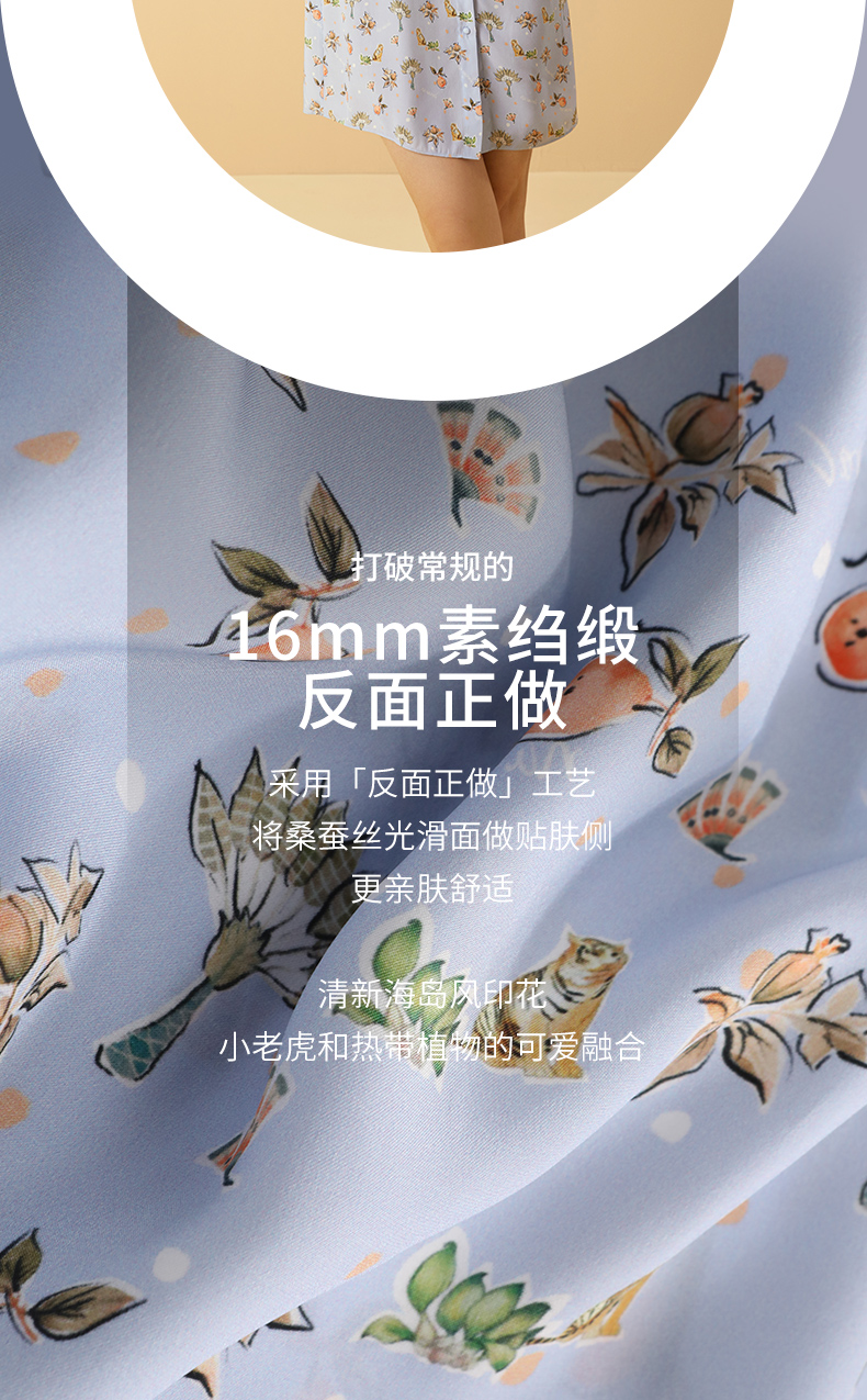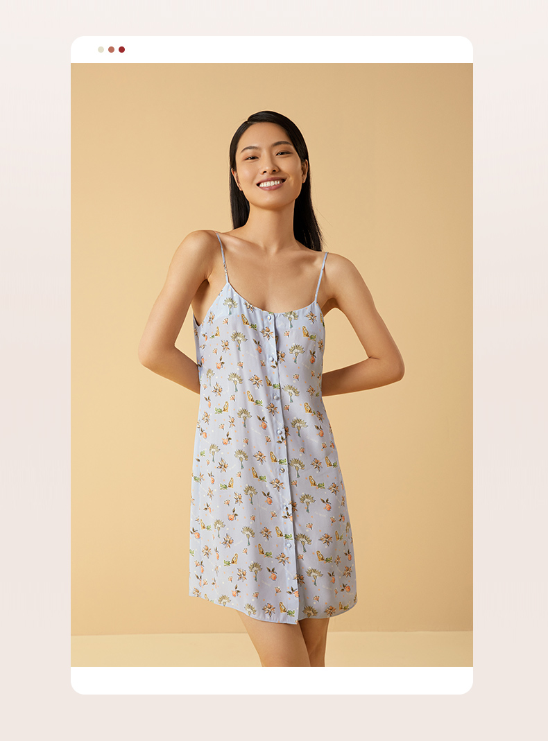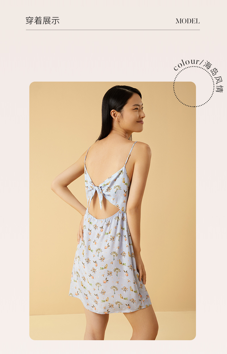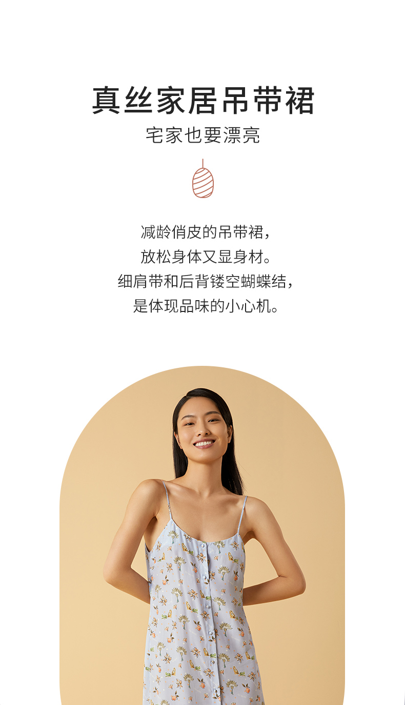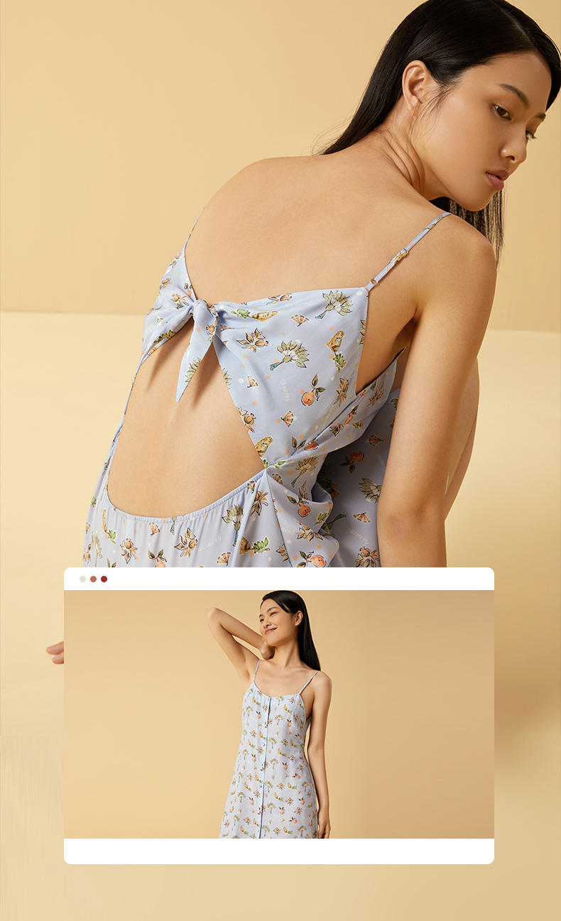 金三塔100%桑蚕丝印花美背蝴蝶结女士真丝时尚吊带裙家居服睡衣 YSFCB306