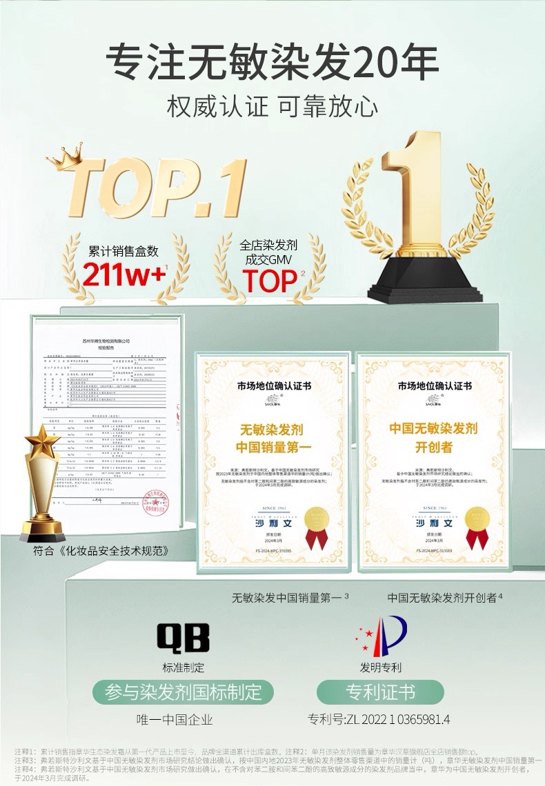 “无敏染发开创品牌”【胖*来热卖 赠精华素1支】上海章华汉草 生态染发霜 染护合一 便捷染发 162ml/盒金标版
