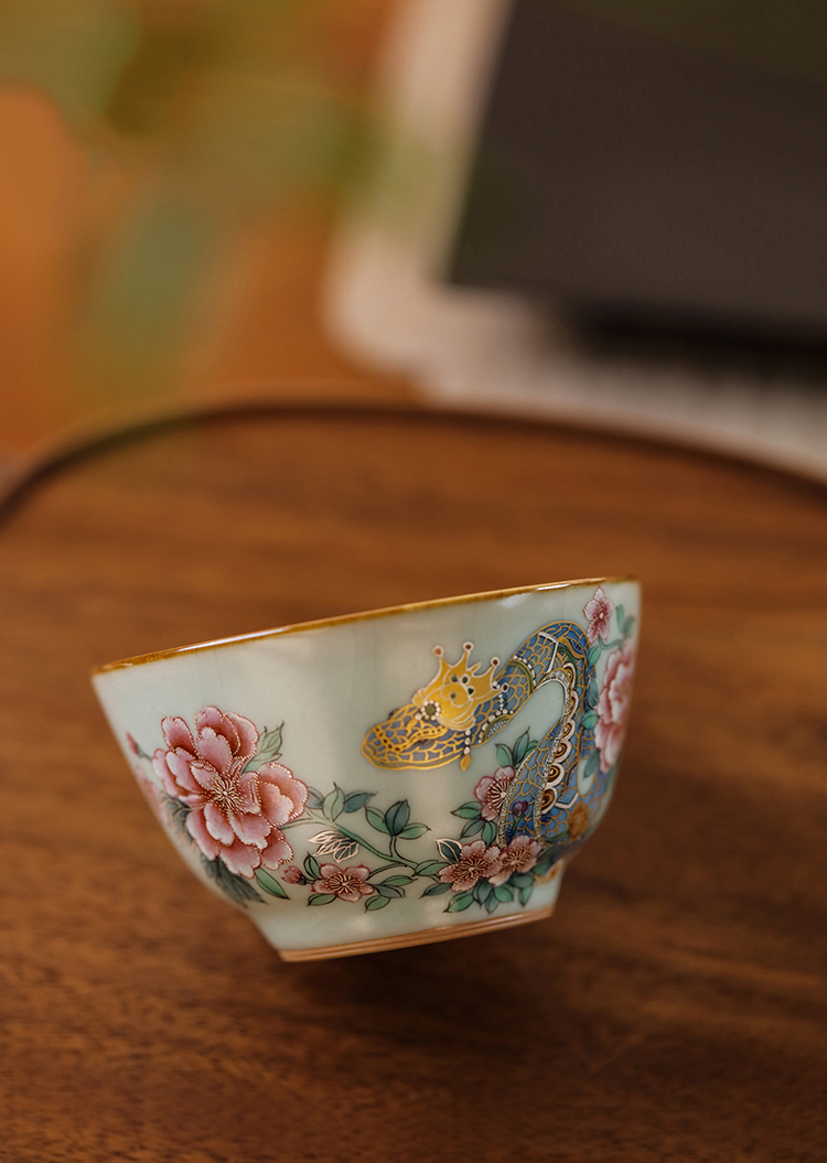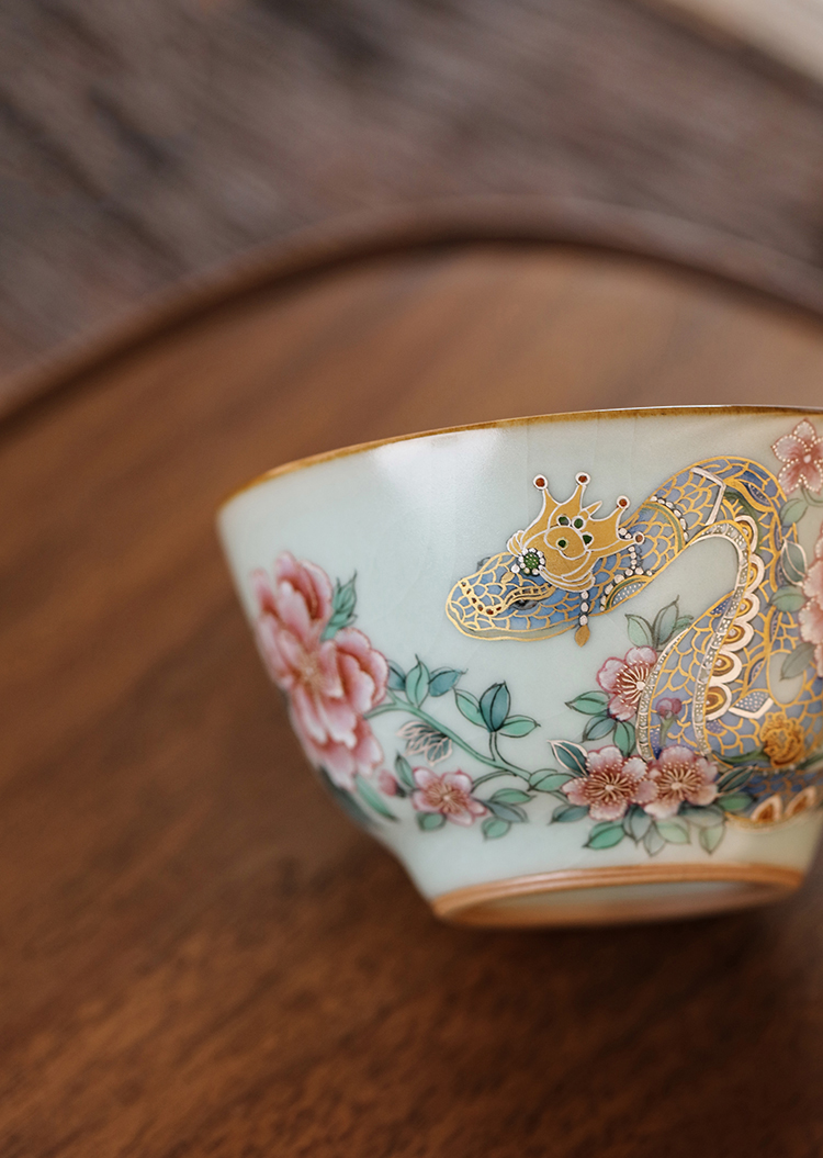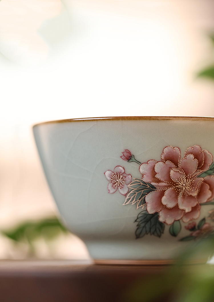 问鼎汝瓷鼎峰系列天青精工复刻款巍澜杯(一路生花)