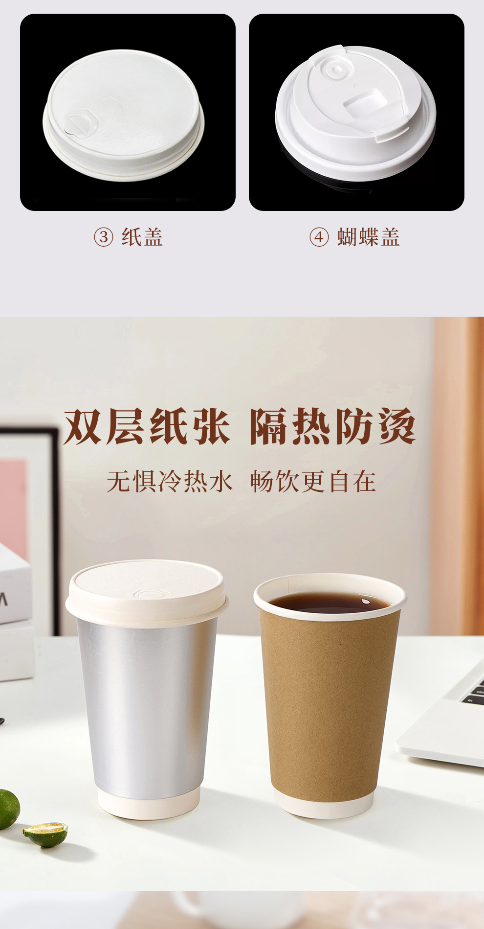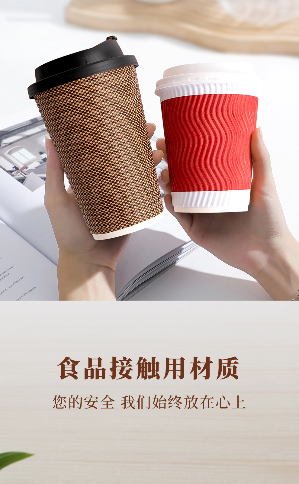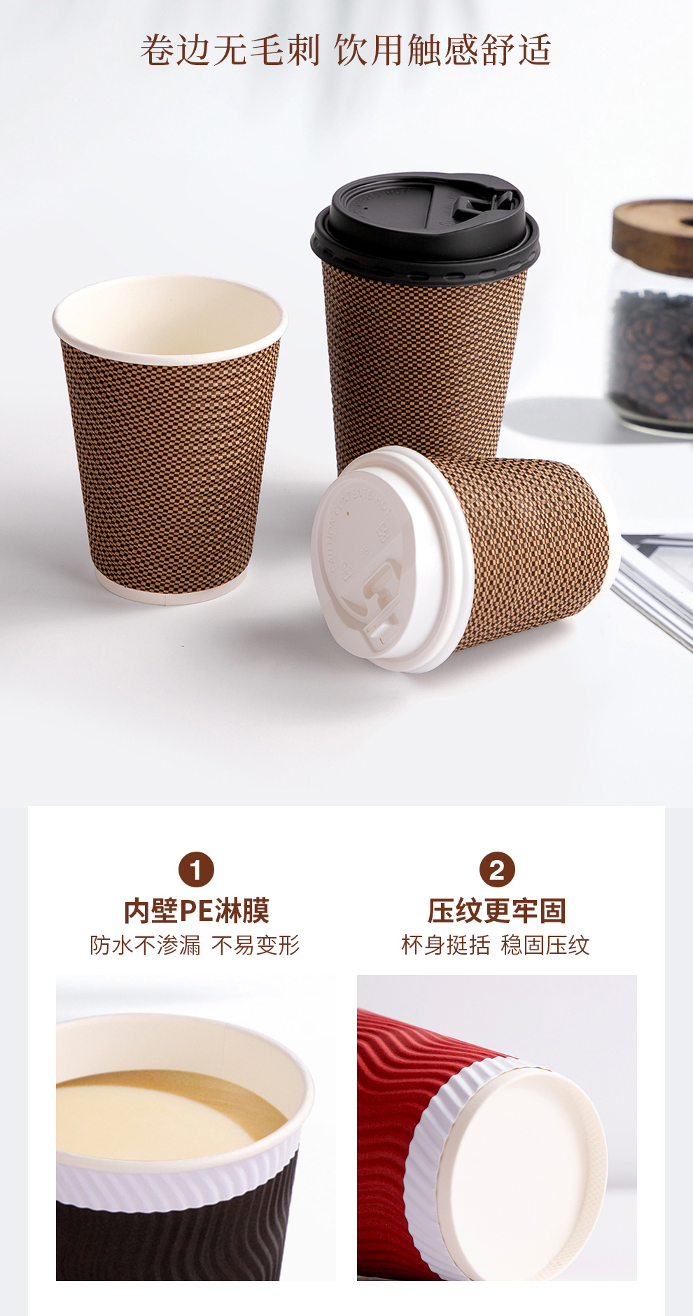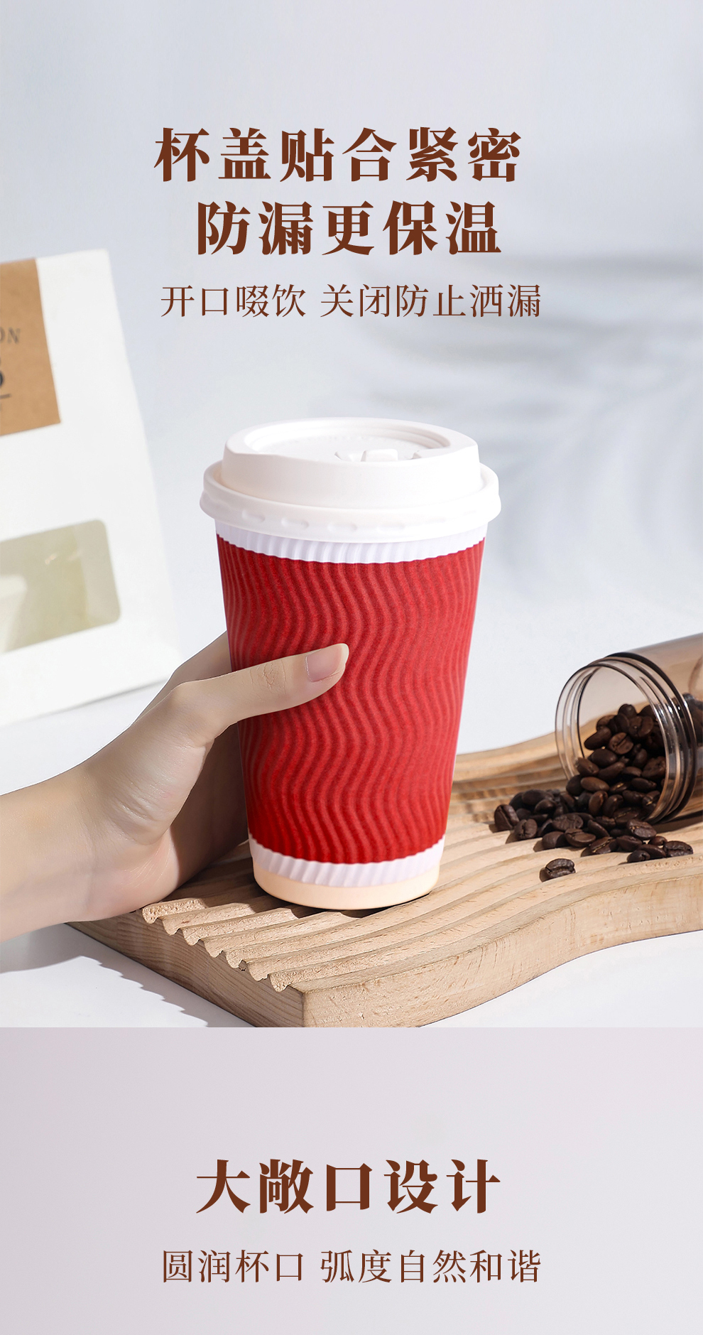 喇叭花纸杯一次性纸杯双层瓦楞中空杯咖啡杯热饮杯子外卖打包带盖