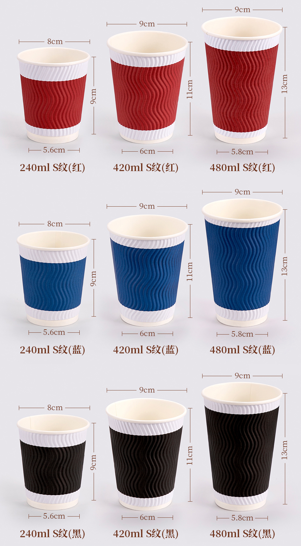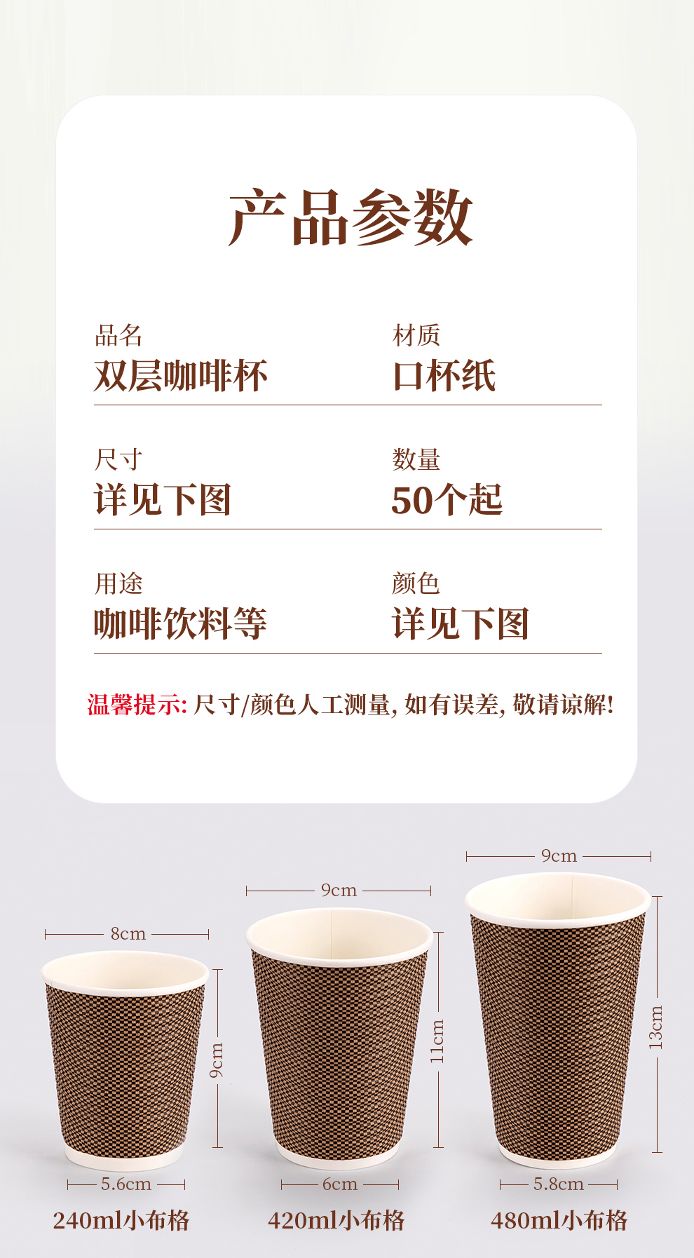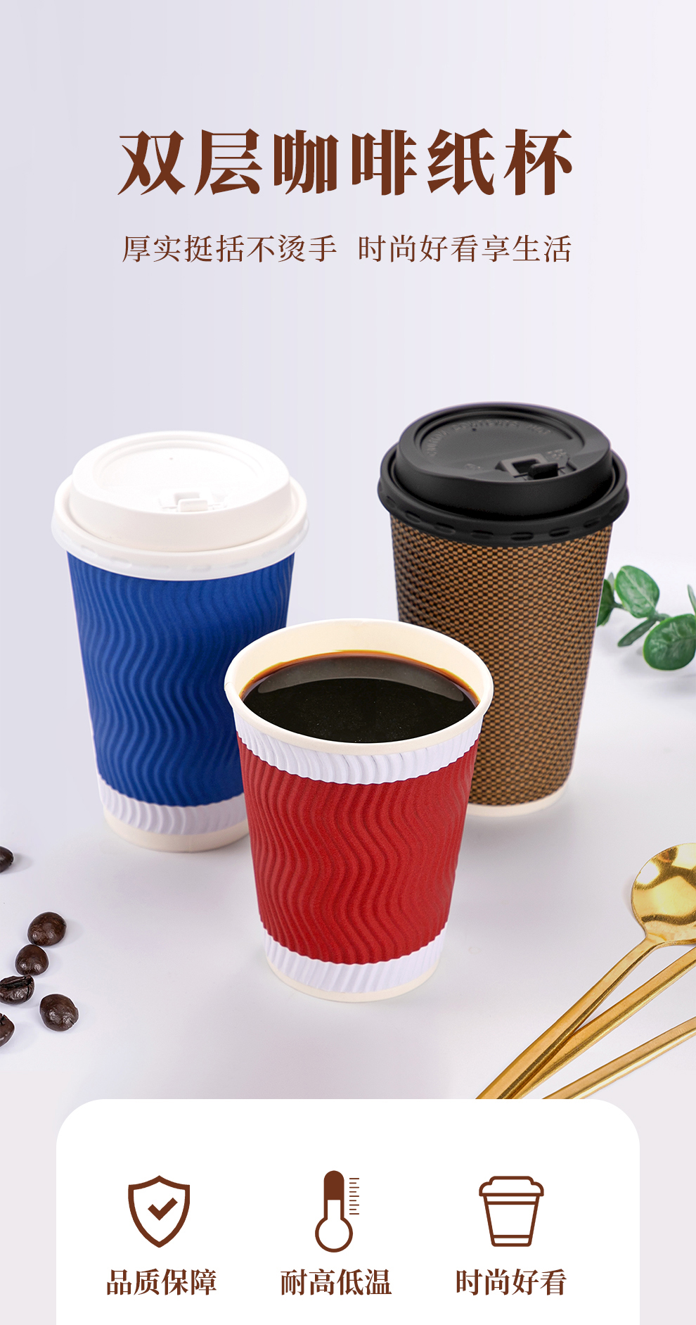喇叭花纸杯一次性纸杯双层瓦楞中空杯咖啡杯热饮杯子外卖打包带盖