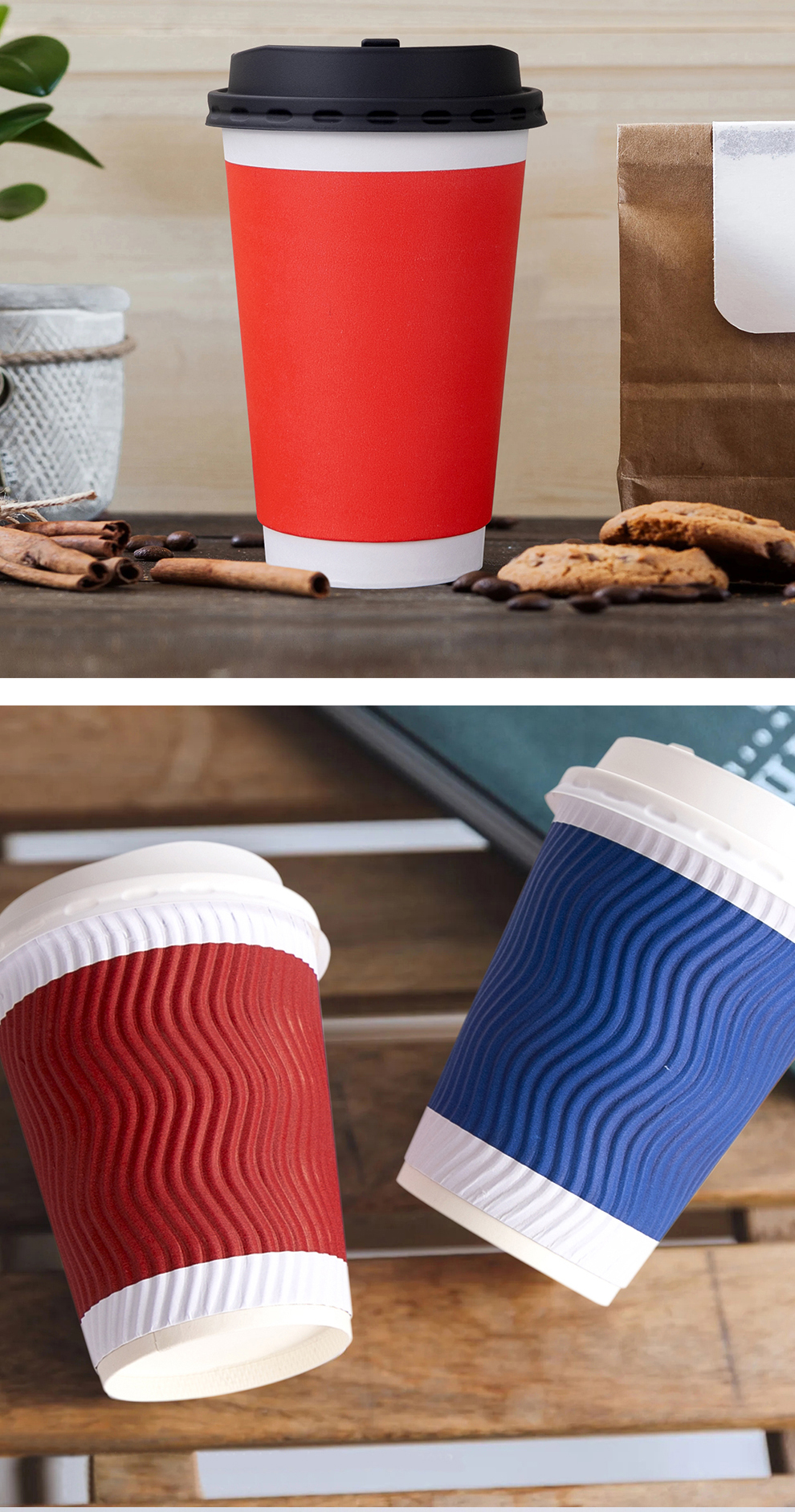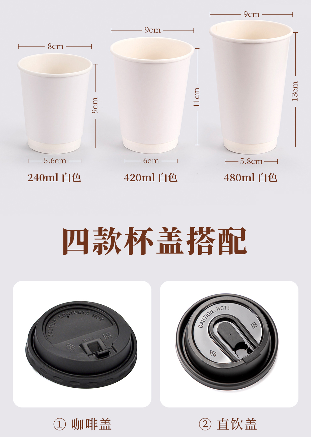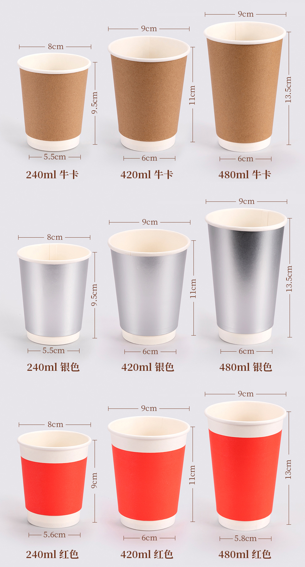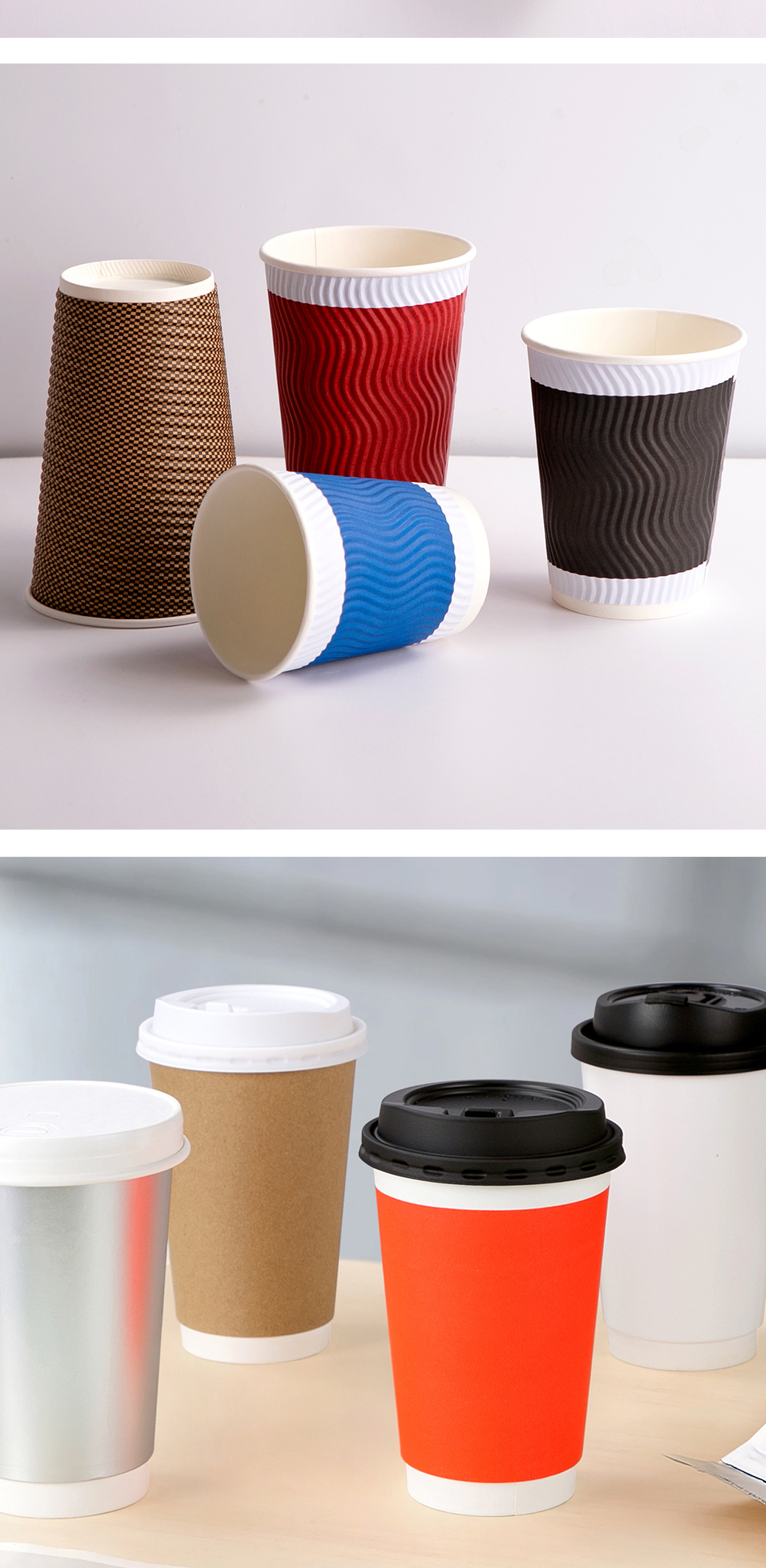 喇叭花纸杯一次性纸杯双层瓦楞中空杯咖啡杯热饮杯子外卖打包带盖