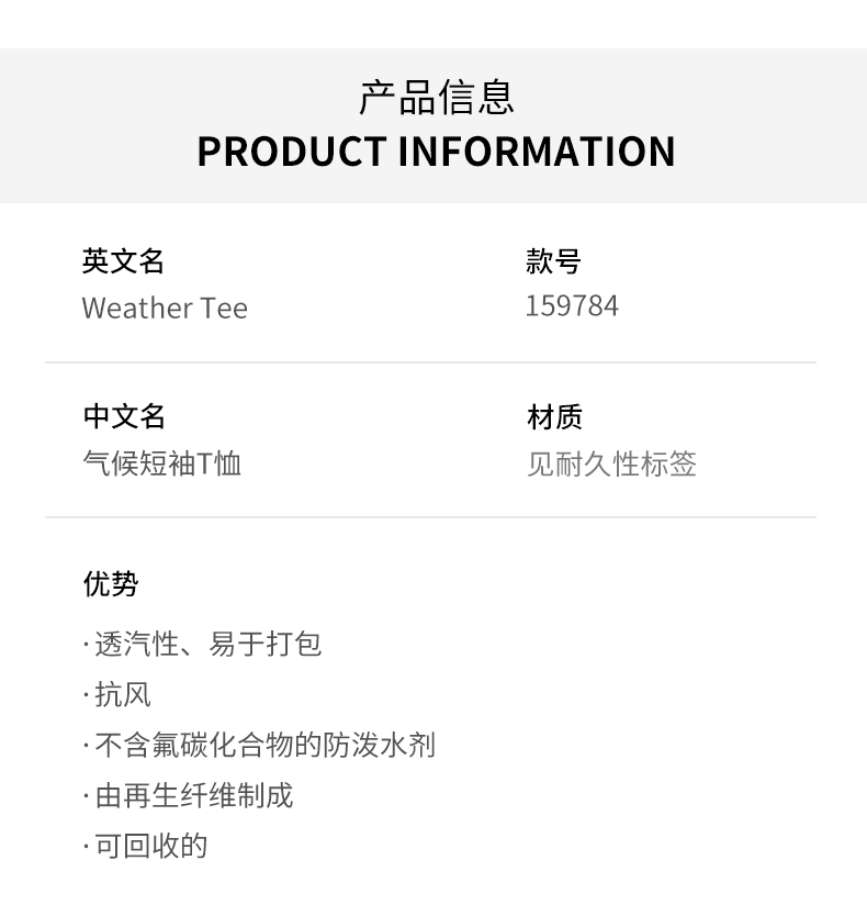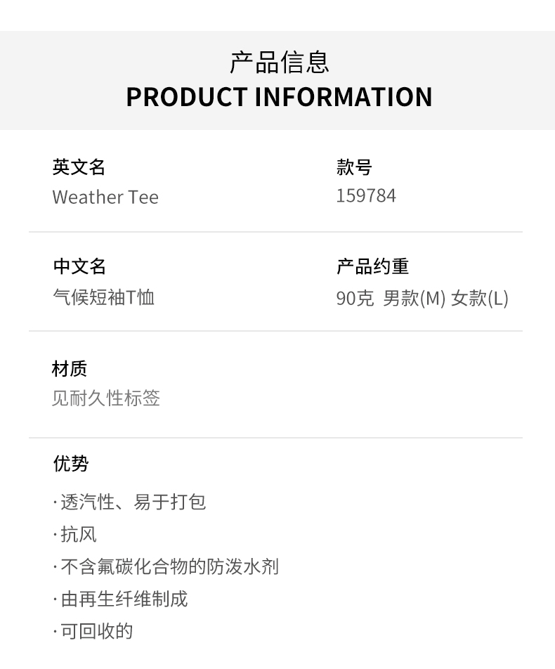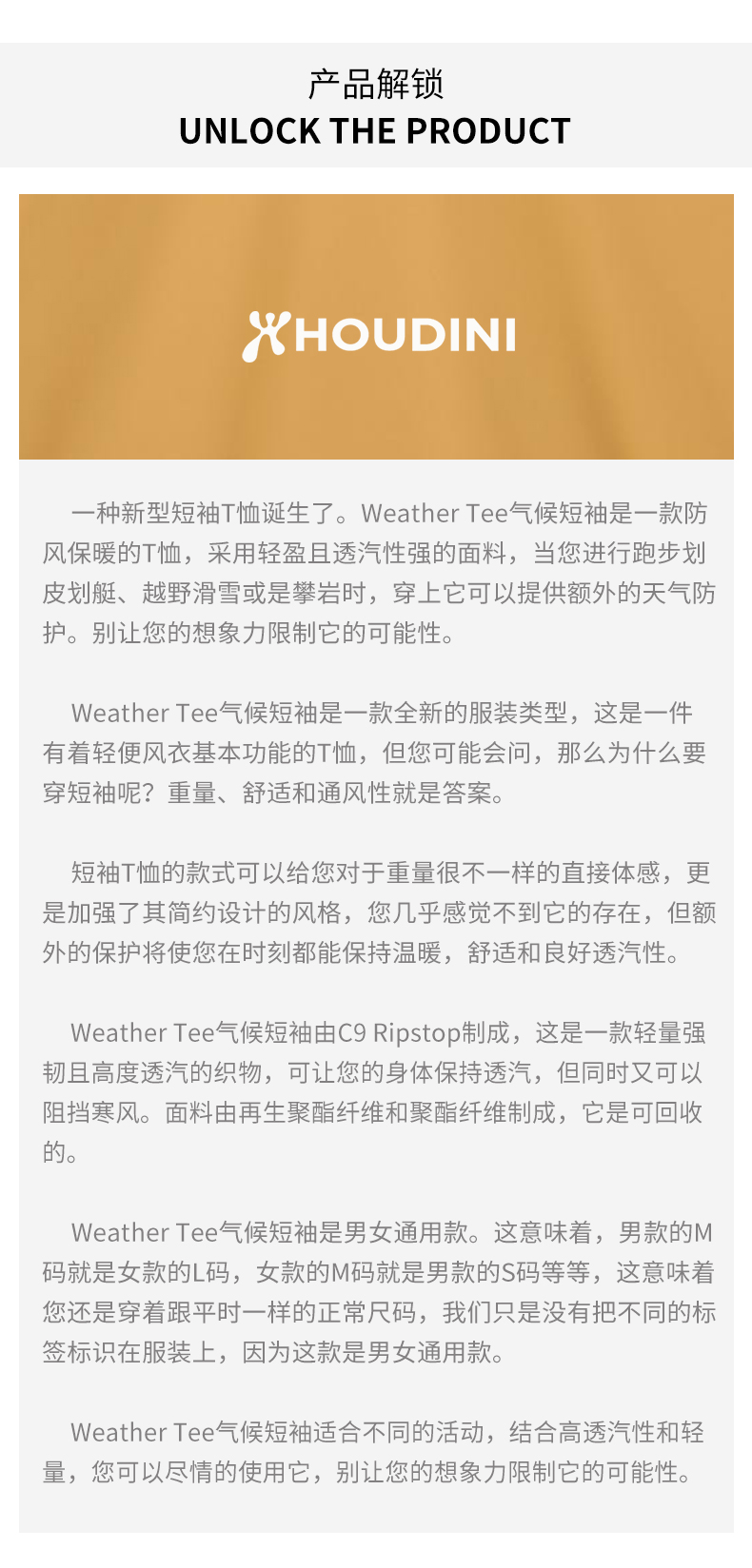 HOUDINI胡丁尼 Weather Tee 气候 男女同款户外速干短袖T恤159784