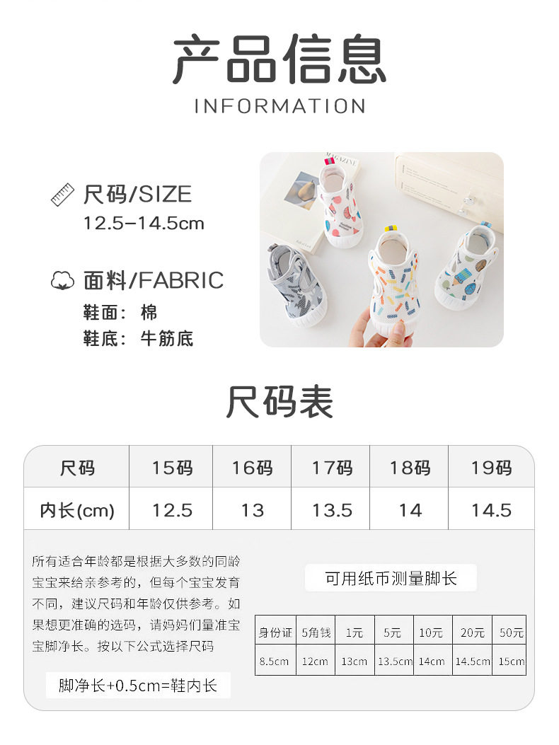 宝宝凉鞋男夏季婴儿学步鞋0一1-2岁防滑软底婴幼儿网鞋女宝宝鞋子