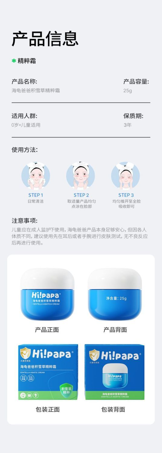 【源码】海龟爸爸积雪草精粹霜面霜婴幼儿宝宝保湿霜补水修护霜洁面护肤50g