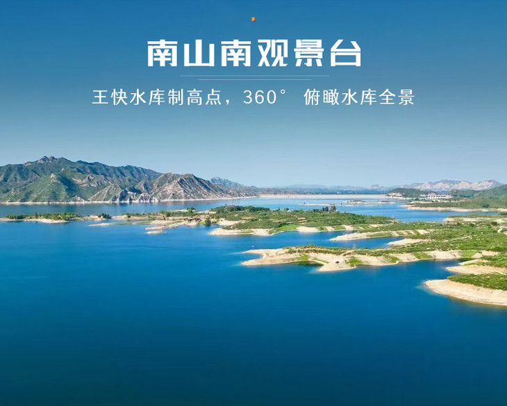 南山南观景台是王快水库绝对 C 位打卡点,海拔约 600 米,360° 俯瞰全库全景,被誉为 “上帝视角看太行蓝海”。盘山公路直达山顶,木栈道、观景平台、“南山南” 石碑都是必拍点位。站于此,万顷碧波、群岛错落、半岛蜿蜒、远山层叠尽收眼底,壮阔如海上千岛湖。春秋湖水湛蓝、夏季绿意满山、冬季冰封如玉;日出、云海、夕阳为三大绝景,雨后天晴常现云海翻涌,日出金辉洒湖堪称仙境。观景台免费、停车免费,适合无人机航拍、露营、拍婚纱、亲子打卡。不到南山南,不算真正见过王快水库的震撼之美。