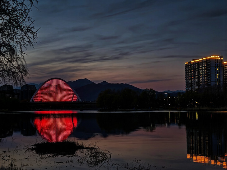 阜平县城夜景以山城灯光、滨河灯带、地标建筑为核心,展现太行小城的温馨与活力。县城依山而建,入夜后万家灯火层层叠叠,与滨河公园流光溢彩的灯带交相辉映,宛如 “小重庆” 既视感。可漫步 滨河步道、县政府广场、网红桥,看灯光倒映河面,吹晚风、赏夜景、品小吃。街道干净整洁、氛围安逸,本地小吃摊、烧烤店、奶茶店云集,可尝阜平烧饼、大烩菜、烤串等美食。没有大都市的喧嚣,只有山城的宁静与烟火气,为首日湖光山色之旅画上温馨句号。