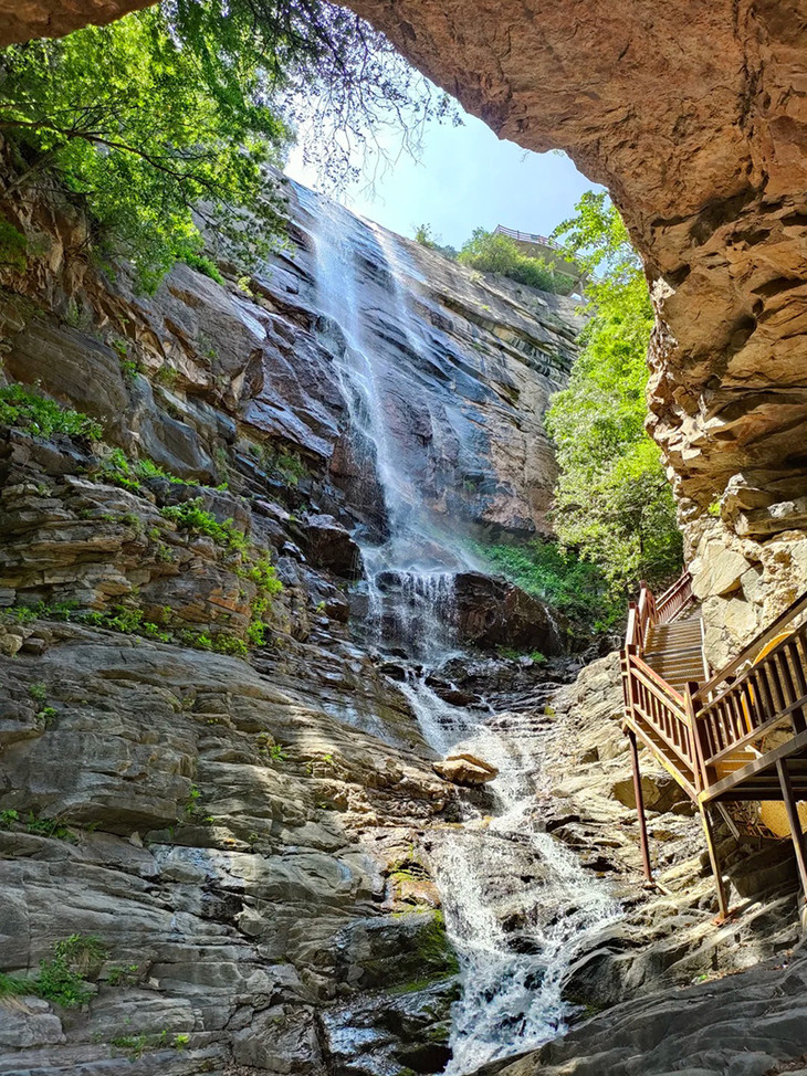 天生桥瀑布群是国家 4A 级景区、国家地质公园,被誉为 “太行深处的香格里拉”,拥有中国北方最大瀑布群与中国最大片麻岩天生桥。核心景观为九级连环瀑布,总落差超千米,其中天桥瀑布(瑶台瀑)落差 112.5 米,气势磅礴、声如雷鸣。27 米天然石桥横跨瀑布之上,为亿万年地质奇观。景区森林覆盖率 95%,是天然氧吧,步道平缓、四季皆美:春赏山花、夏避暑观瀑、秋看红叶、冬览冰瀑。网红打卡点:天生石桥、瑶台瀑、银河瀑、花溪水阶、迷雾森林、高山草甸,拍照出片、洗肺治愈。全程约 3—4 小时,可徒步或乘索道,老少皆宜。