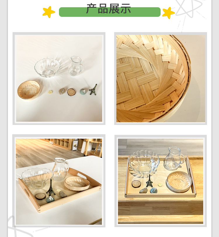 蒙氏生活区蒙台梭利博苑幼儿园教具托盘长方形塑料大中小号多色